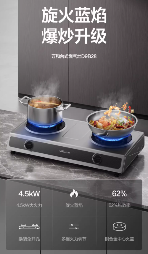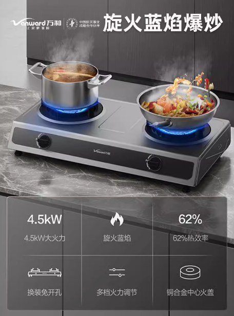 (特)万和(Vanward)燃气灶具 家用台式不锈钢燃气灶 液化气双灶具 煤气炉煤气灶台 4.5kW大火力 JZY-D9B28(液化气)