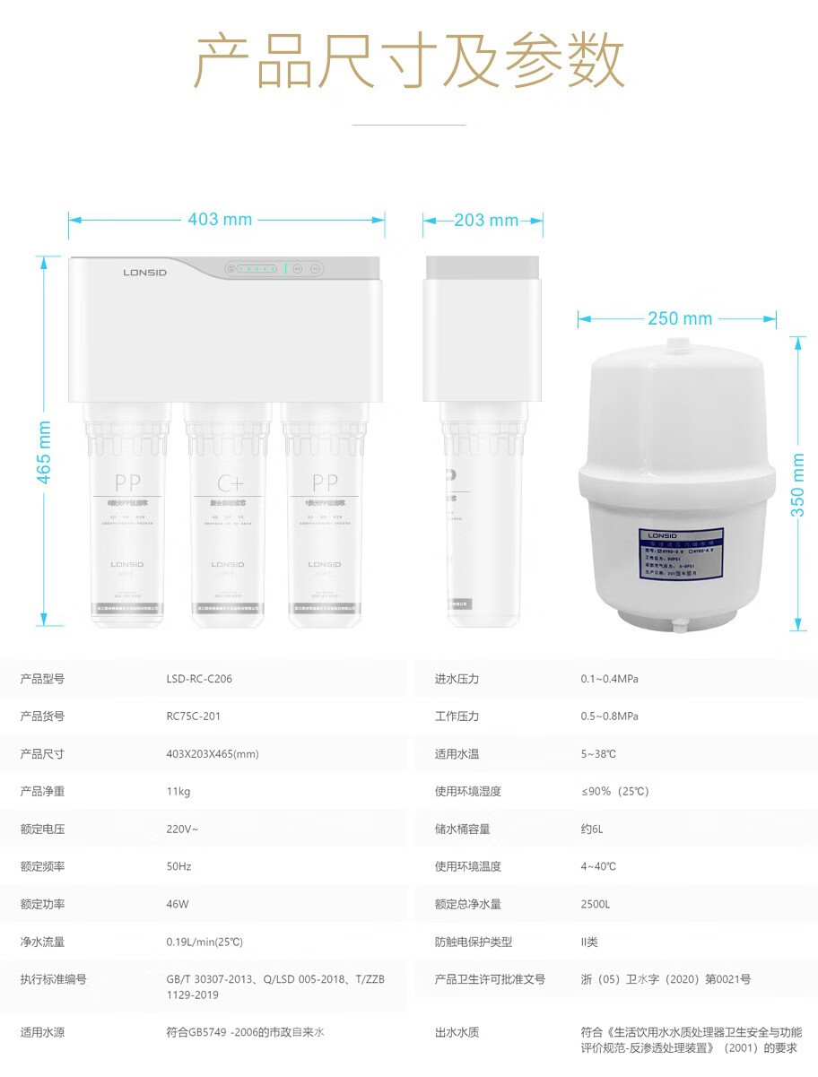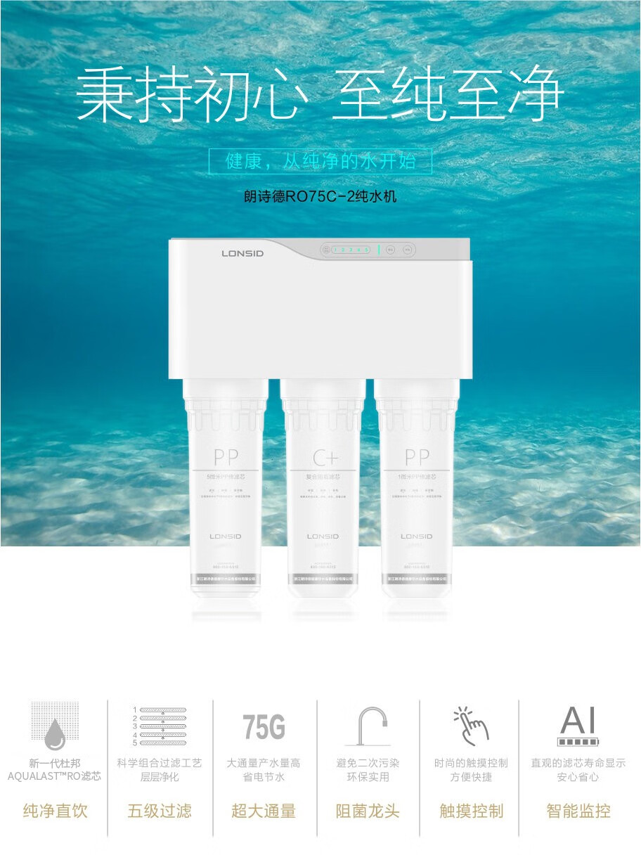 (特)朗诗德(LONSID) 朗诗德(Lonsid)家用直饮厨房过滤器RO反渗透纯水机 75C-2 标准版