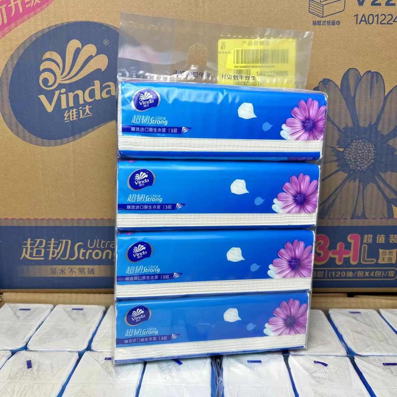 (特)维达抽纸超韧系列软包L码大号抽纸3层120抽加长面巾纸