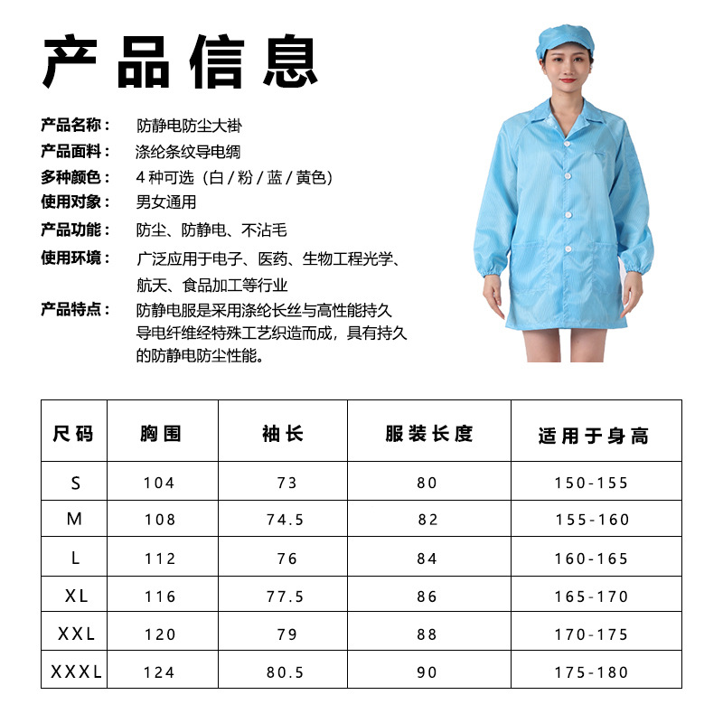 白色蓝色防静电工作服防尘防静电大褂洁净工作无尘服工衣