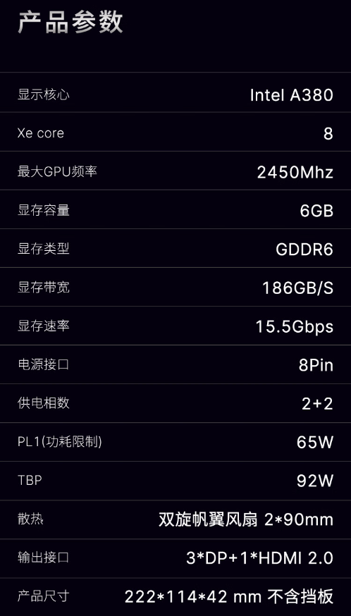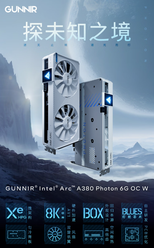 (特)蓝戟(GUNNIR)intel Arc A380 Photon 6G 2450MHz GDDR6 OC W 游戏显卡设计视频剪辑台式电脑显卡