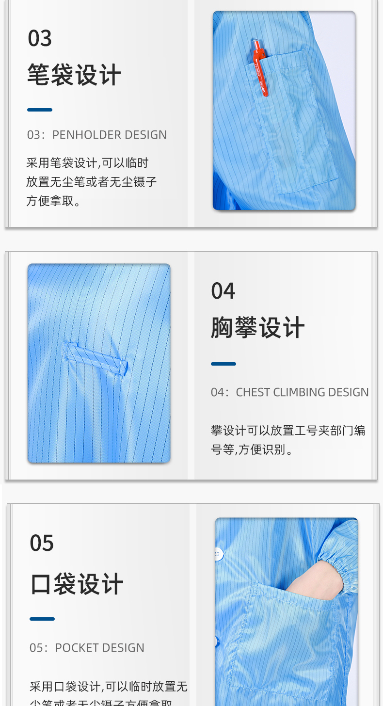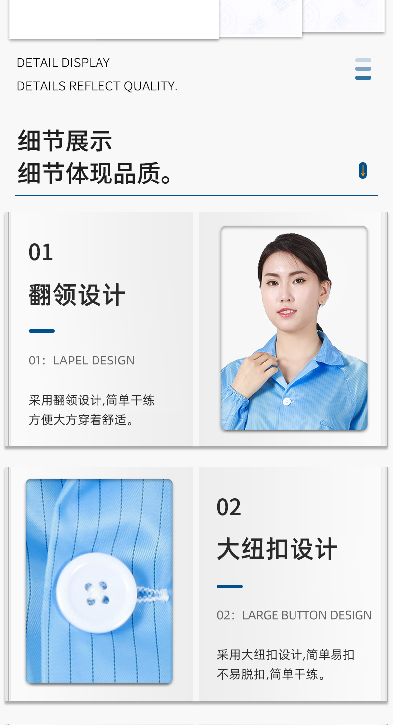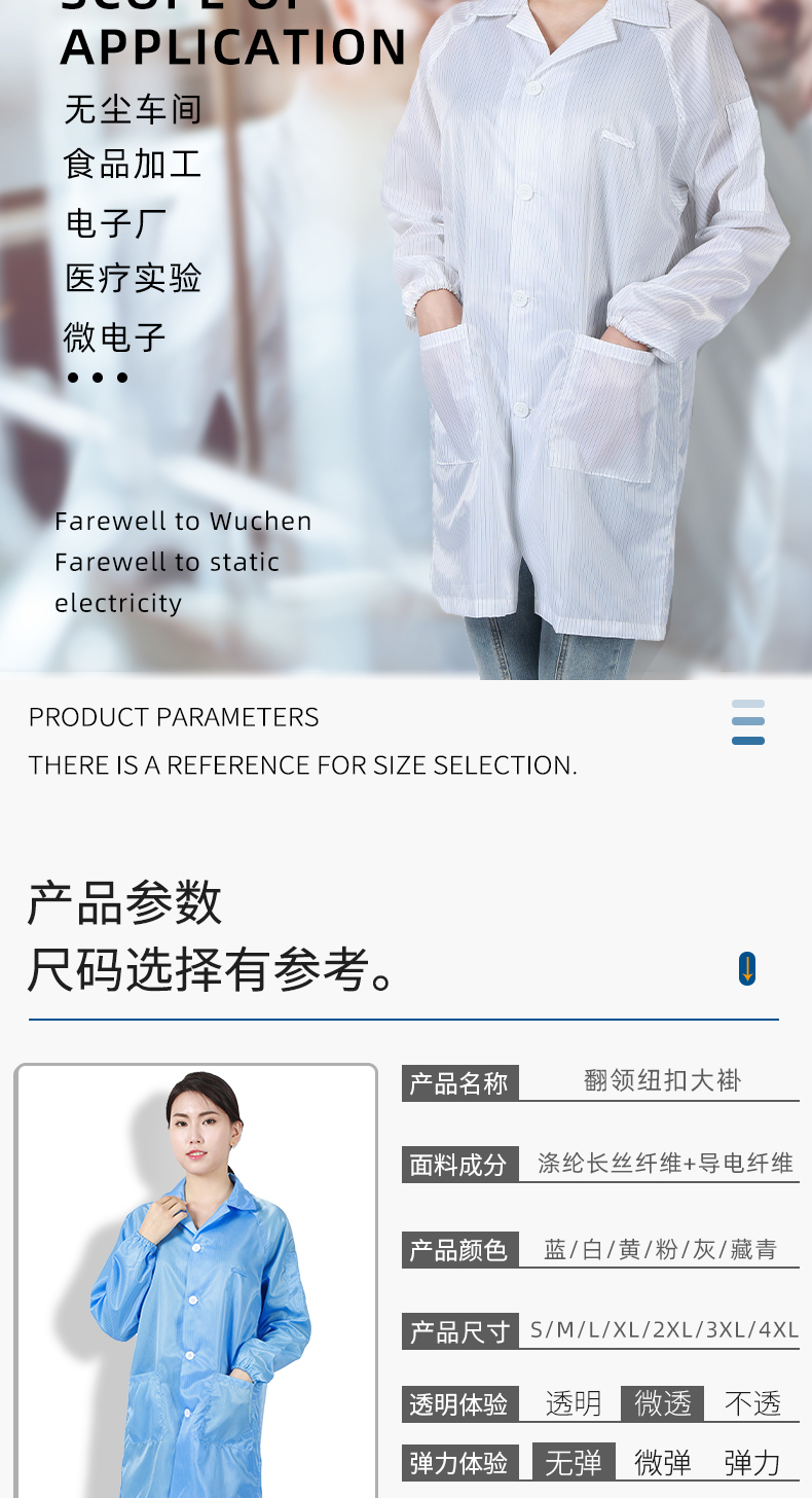 静电衣无尘服长款工作服大褂蓝白色防尘服电子厂防护服男女食品厂