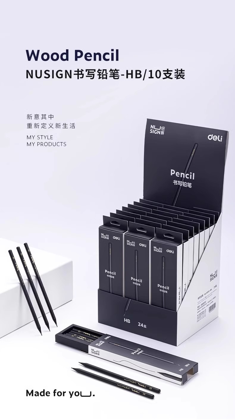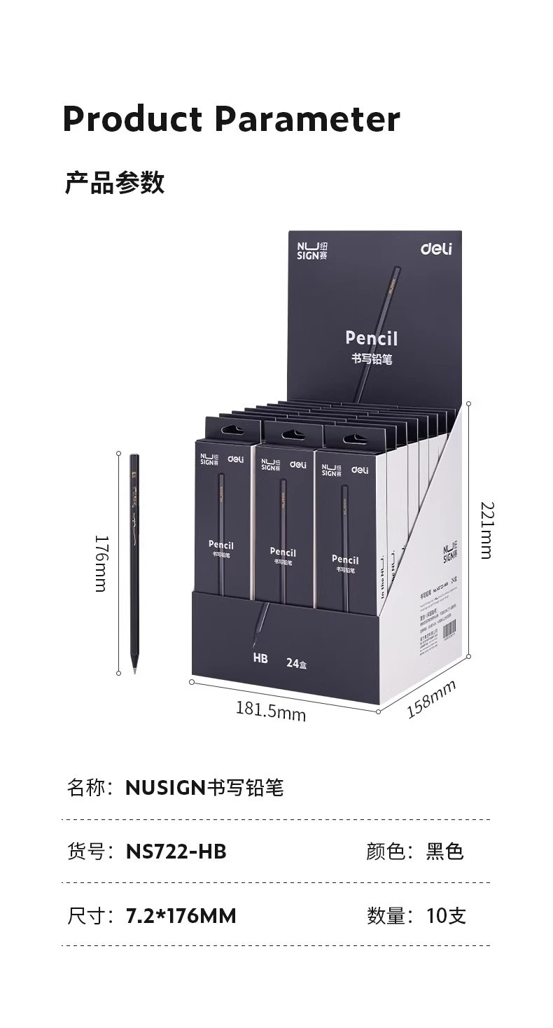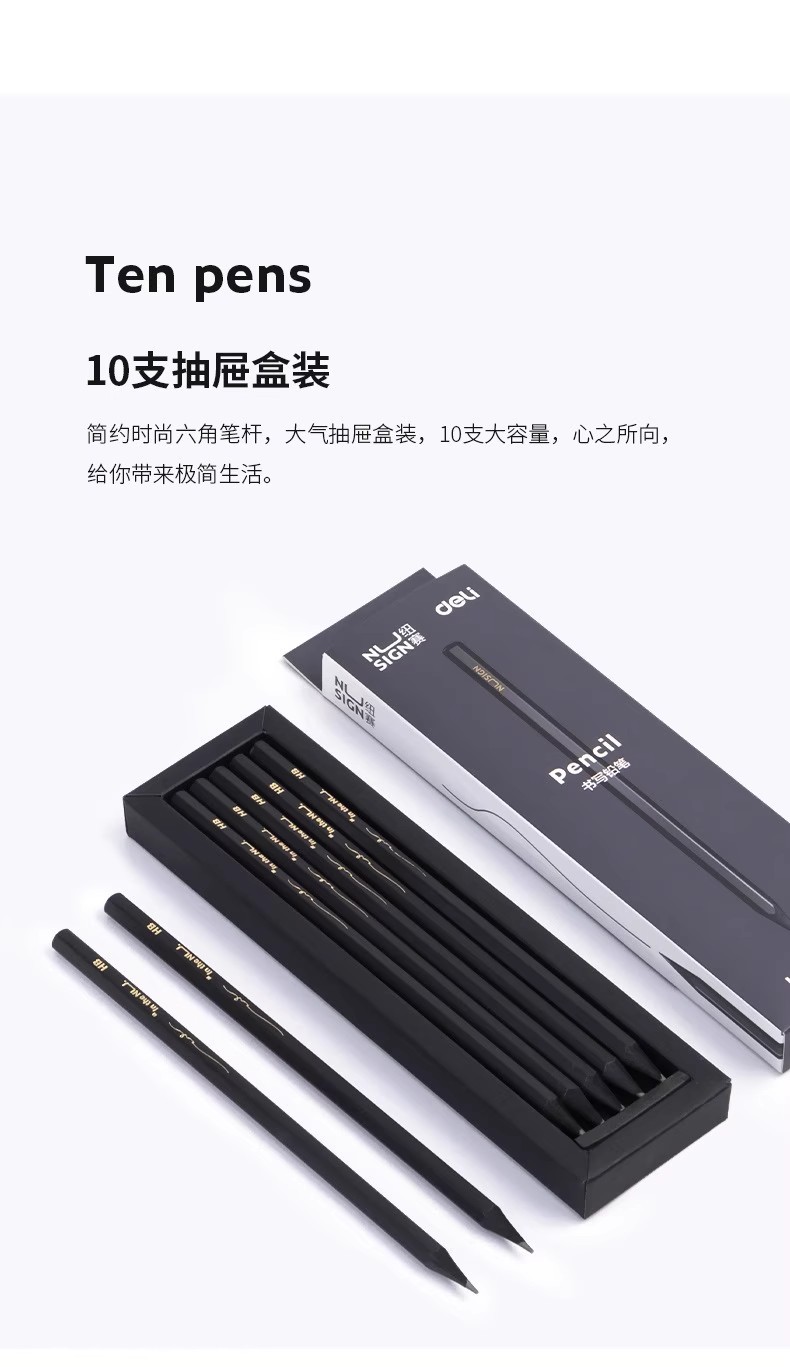 (特)得力NS722文具纽赛黑木铅笔石墨2B/HB美术素描