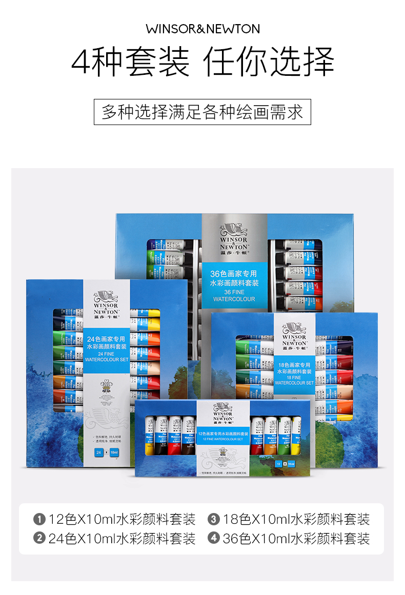 温莎牛顿画家专用水彩颜料套装12/18/24/36色10ML画画套装