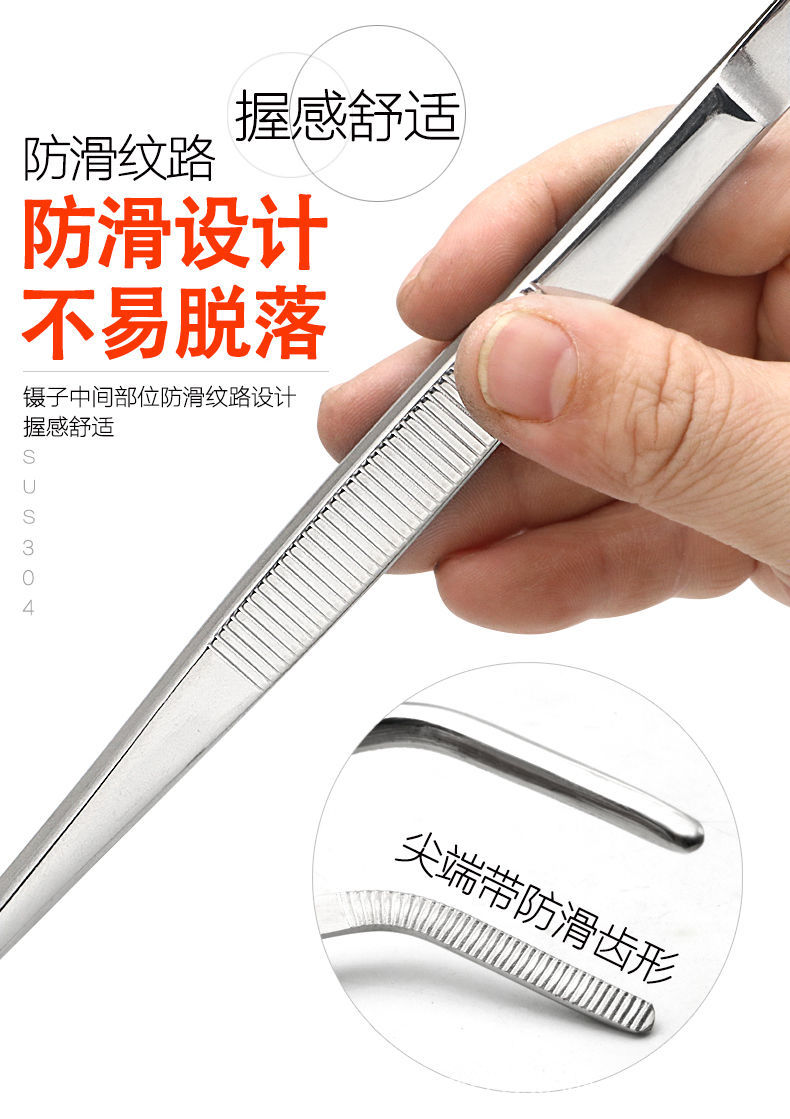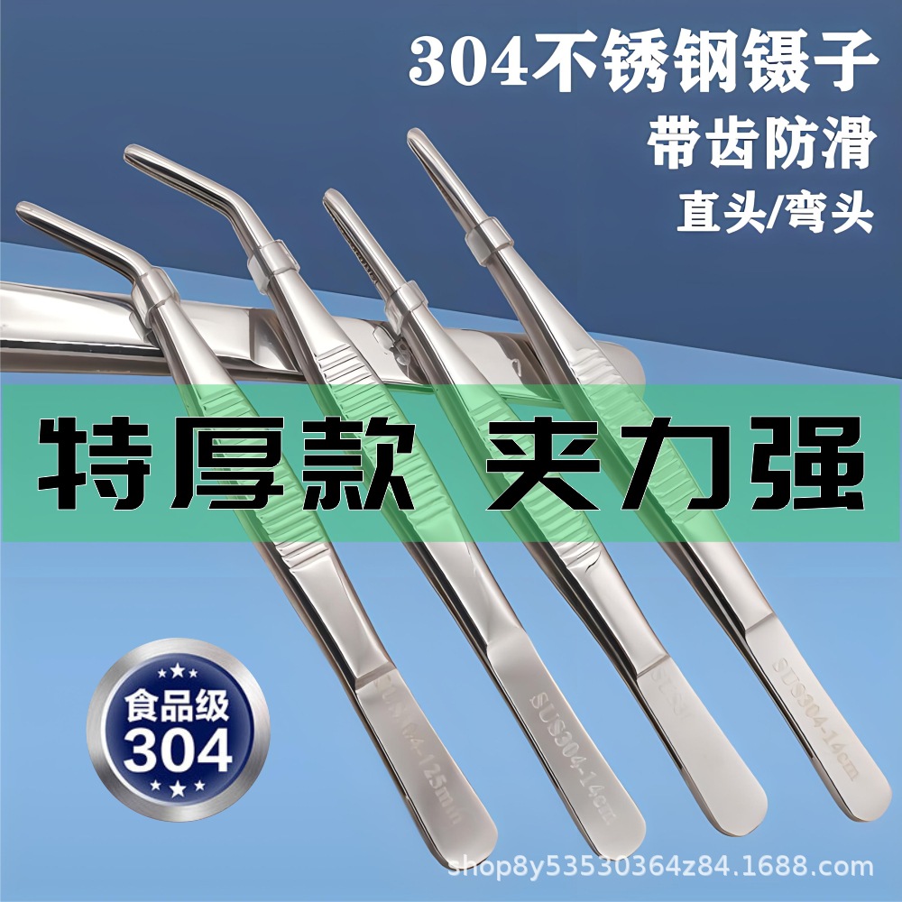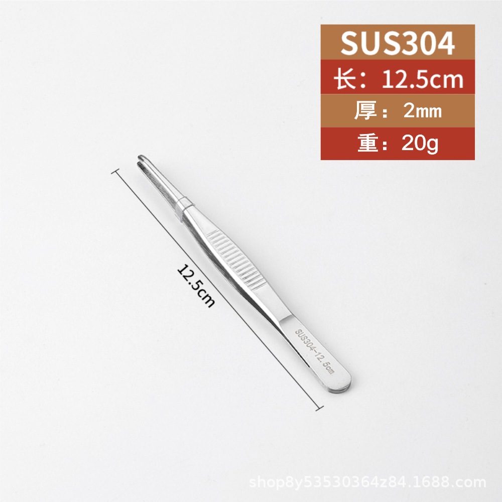 304不锈钢特厚医用镊子多肉圆头