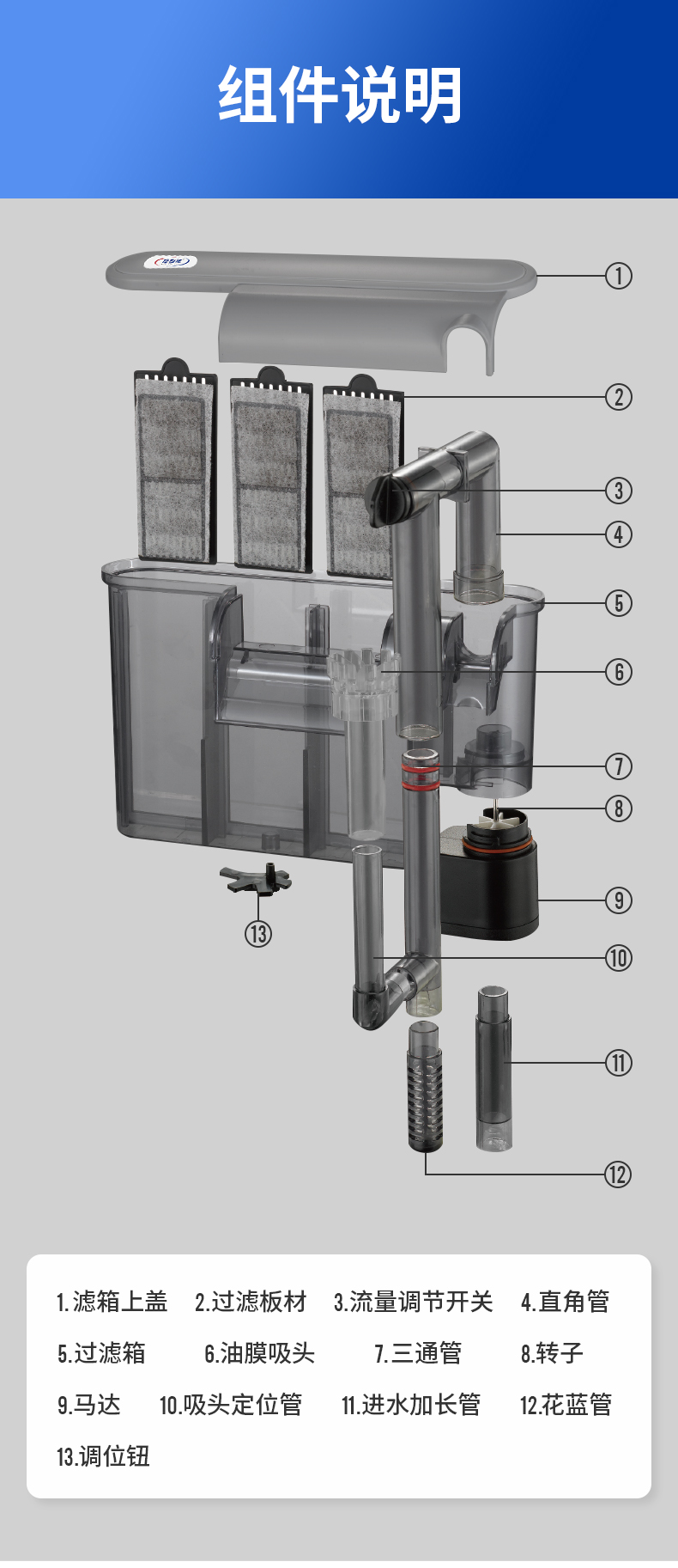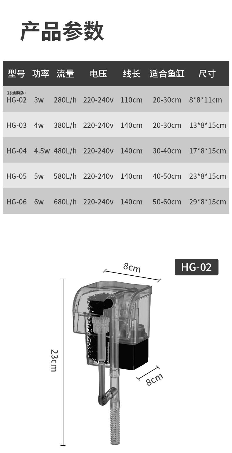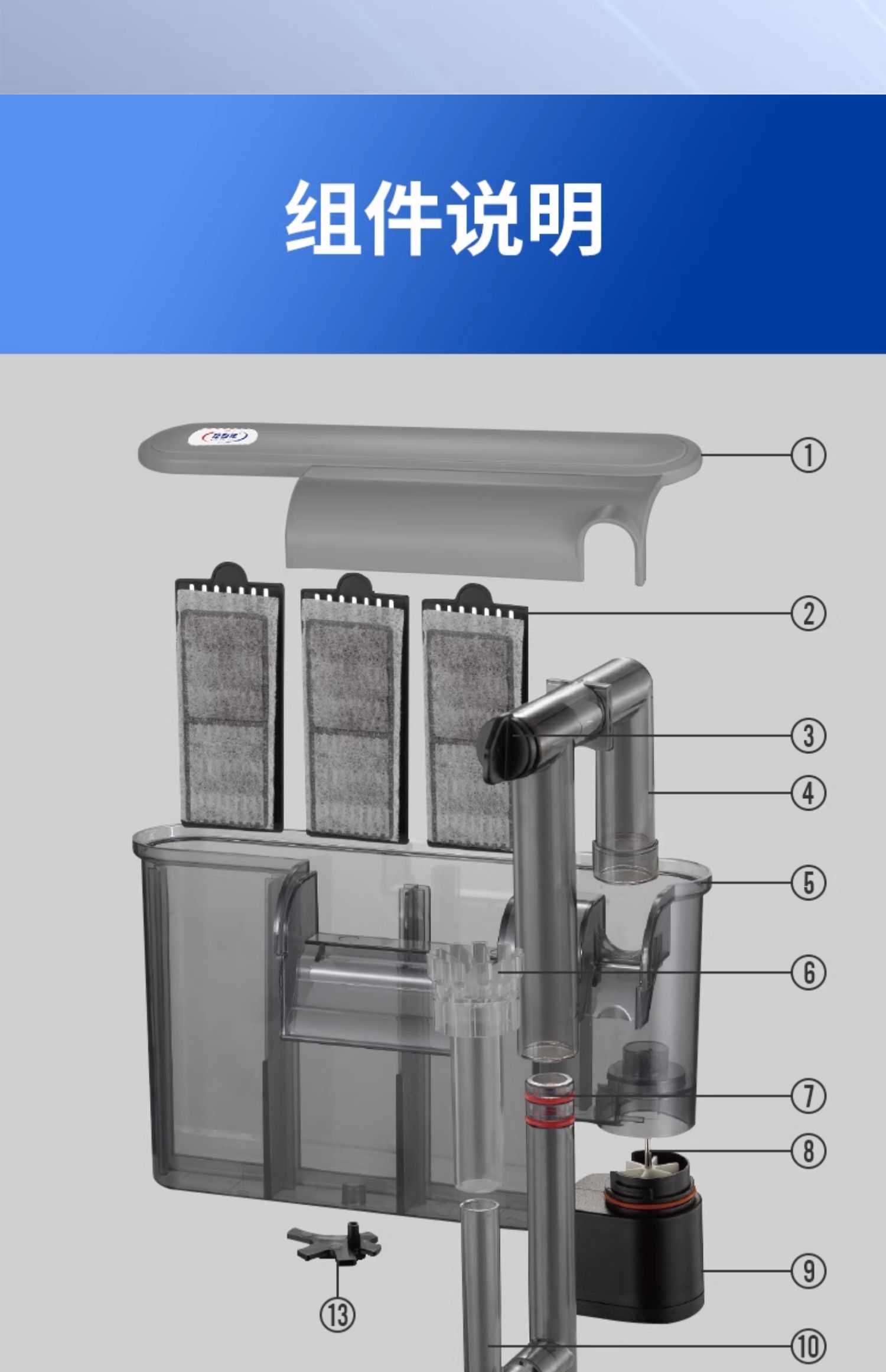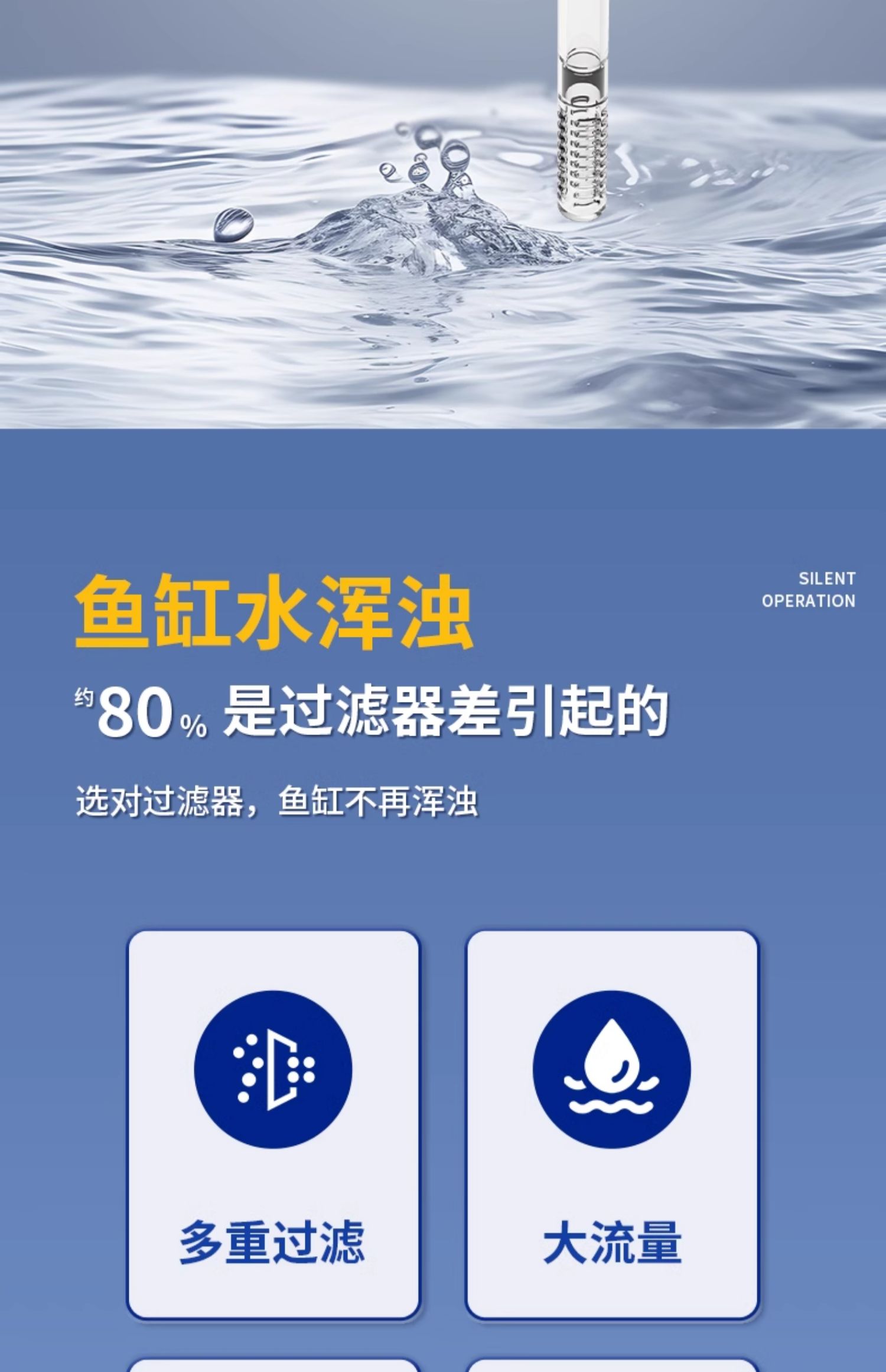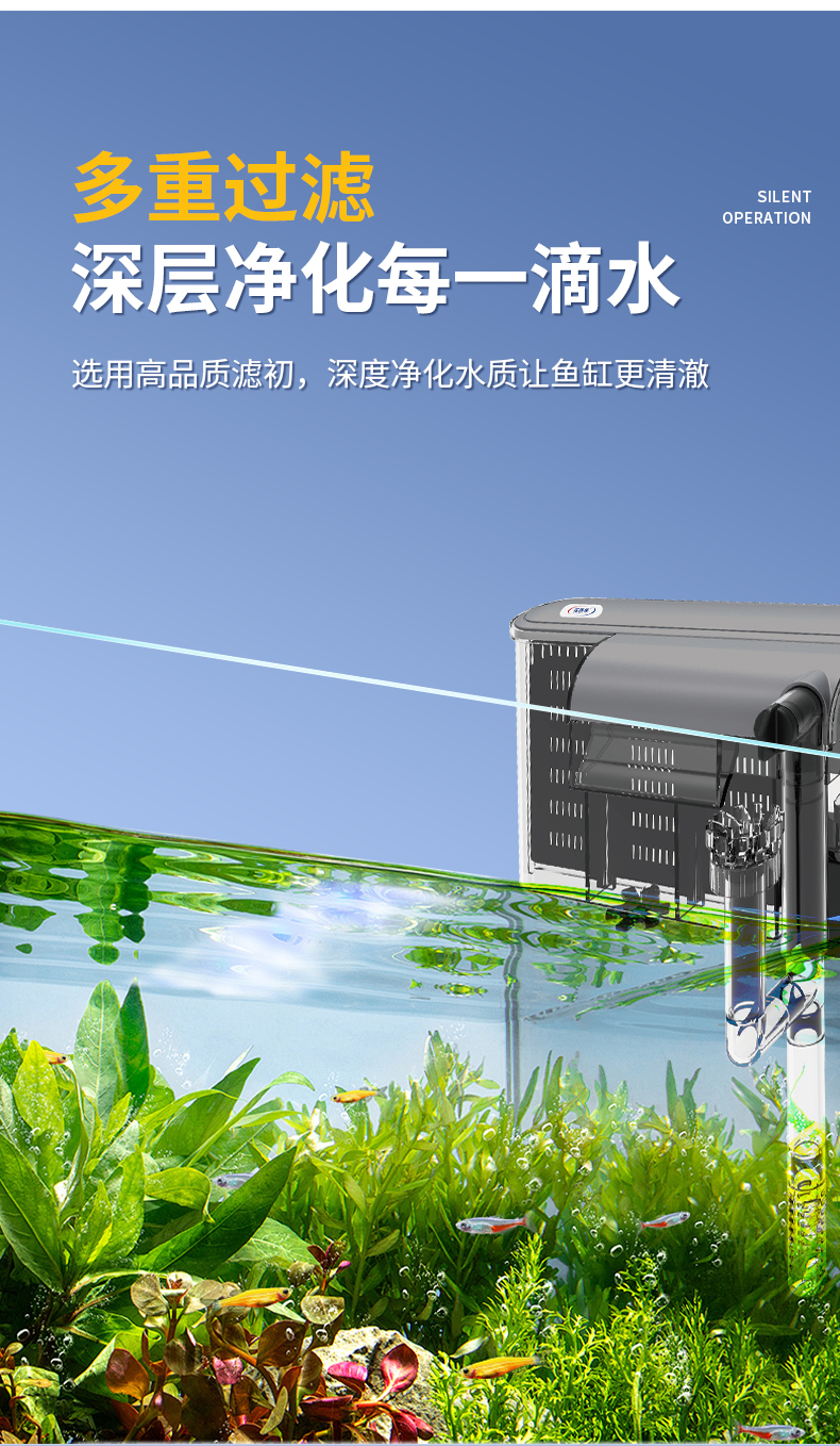 三合一鱼缸过滤器瀑布壁挂净水循环养鱼抽水泵