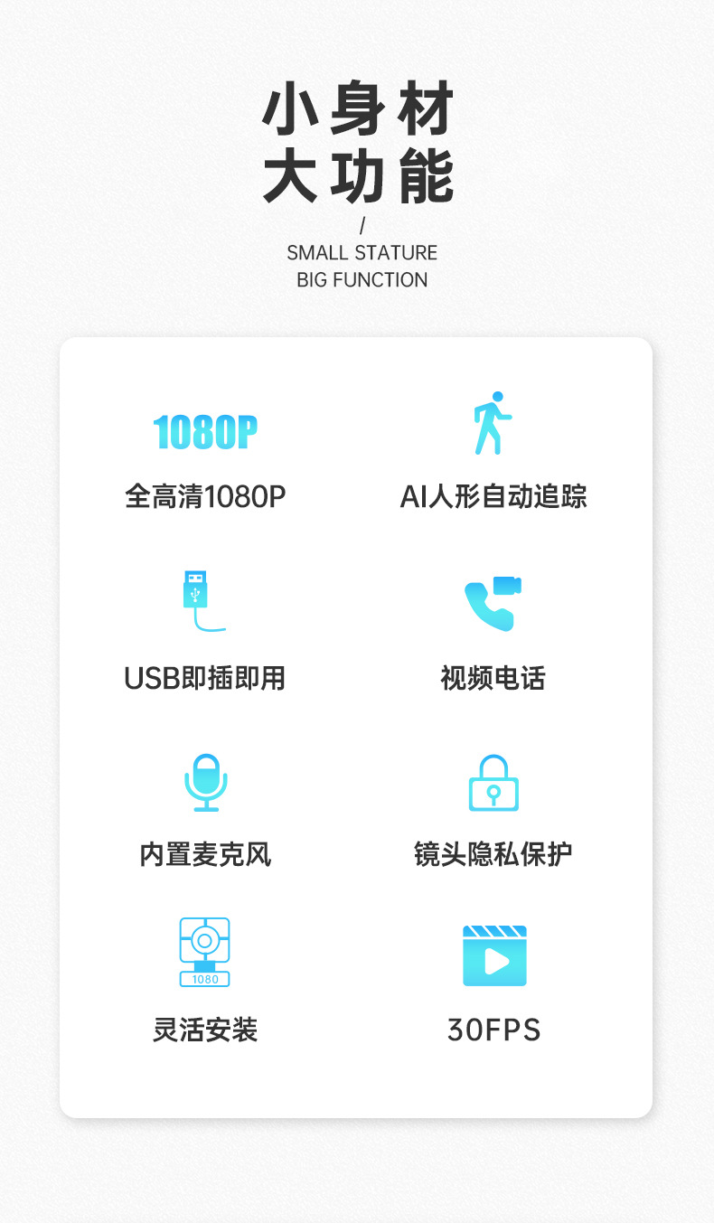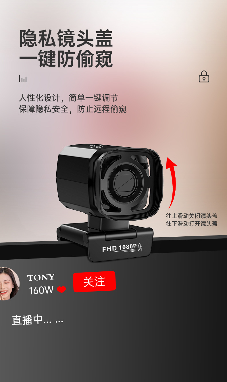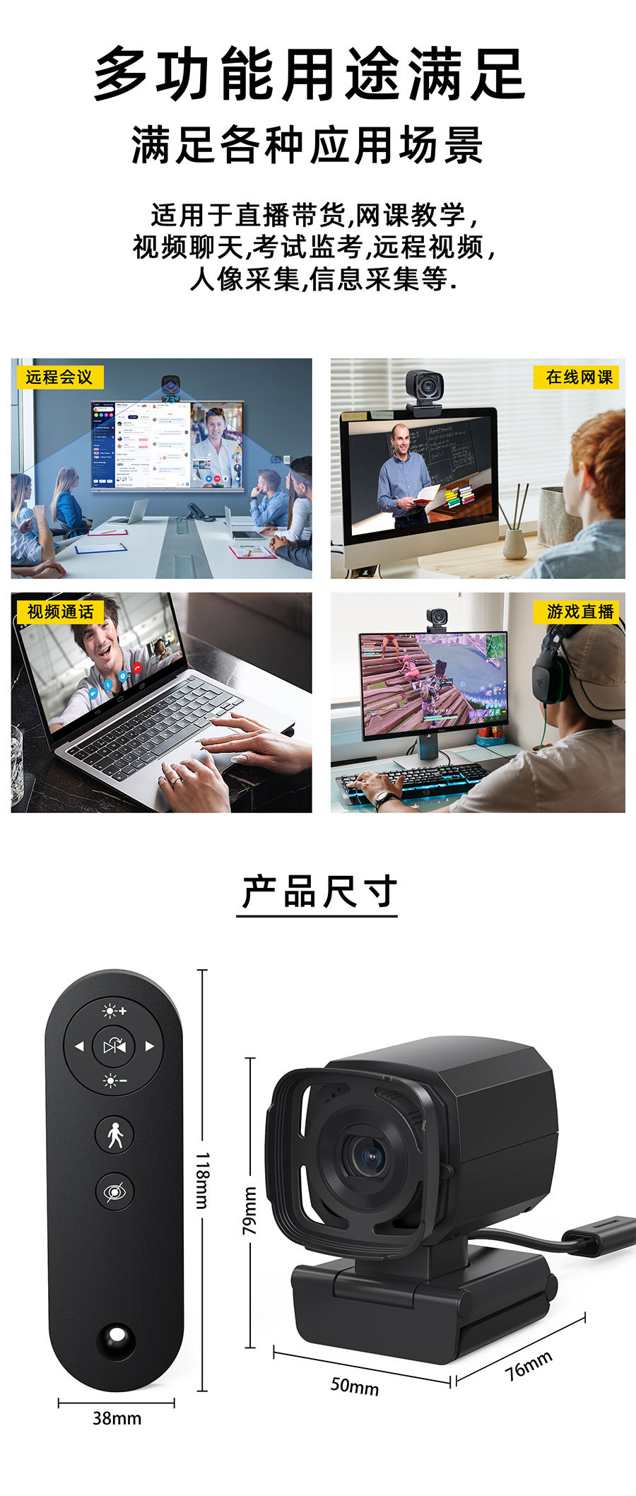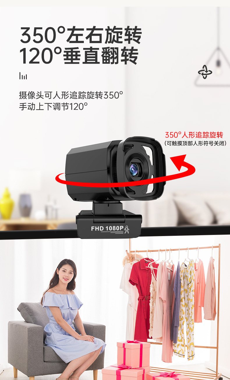 智能跟踪网课直播电脑摄像头1080P高清网络摄像头UBS摄像头