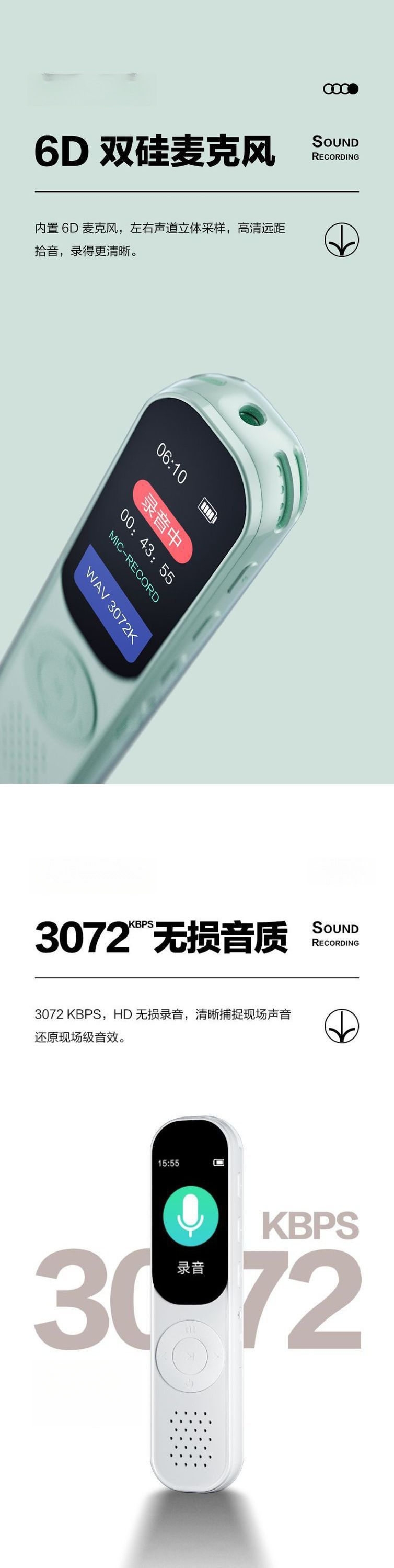 熊哲察录音笔学生版专业高清随身便携式课堂录音上班族用录音转文字