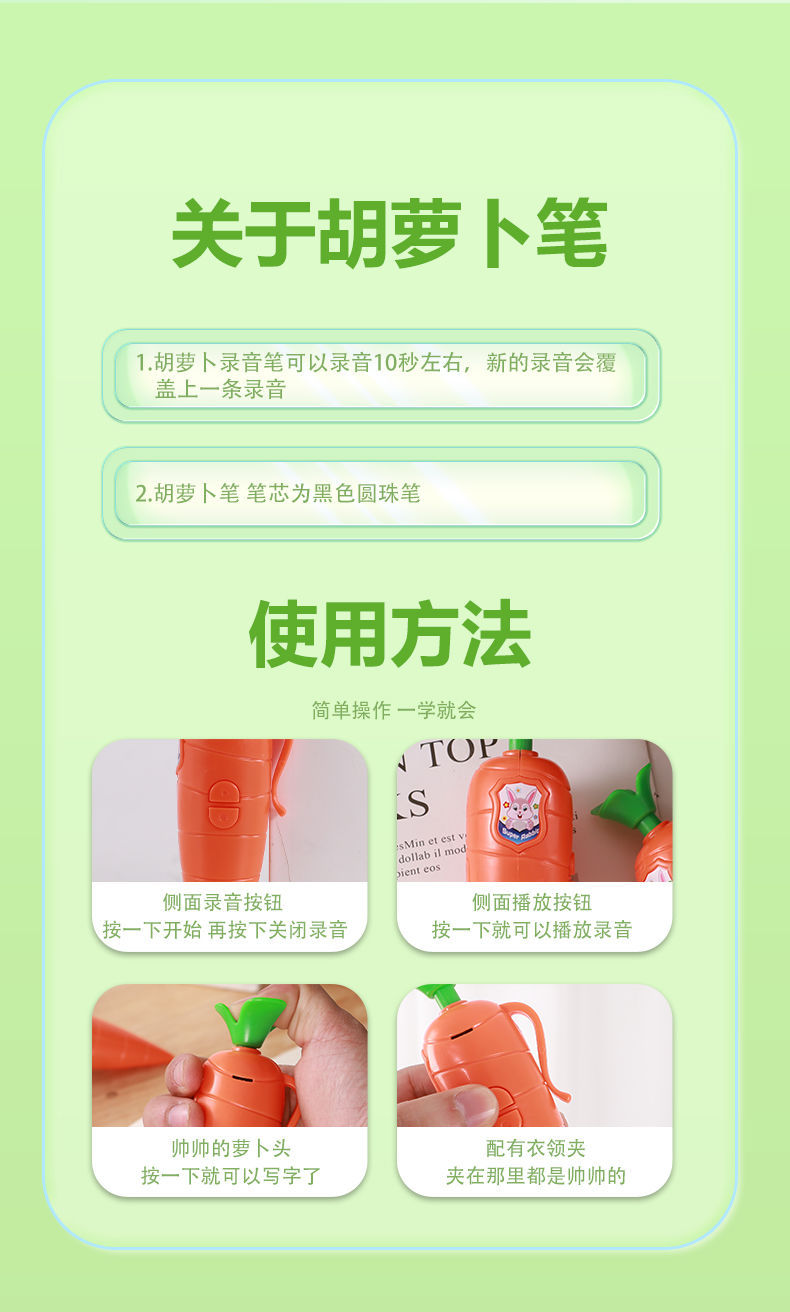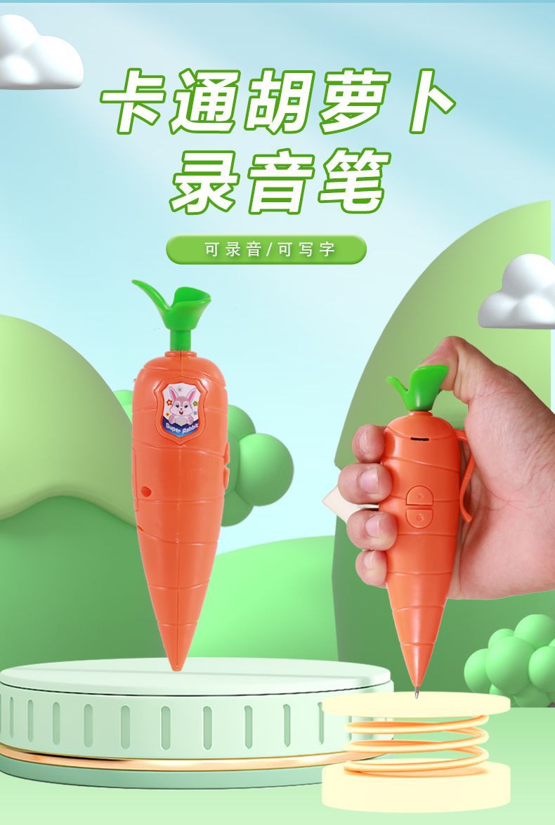 创意文具胡萝卜儿童录音笔小巧水果按压圆珠笔录音器学生