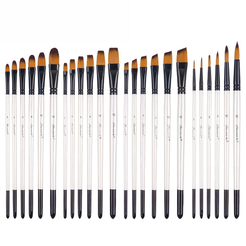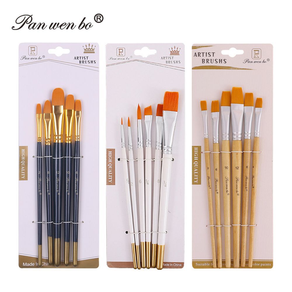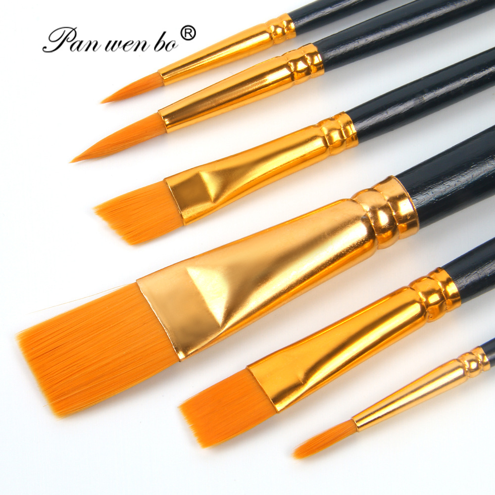 6支装尼龙油画笔木杆颜料笔水粉笔套装美术diy画笔画 材用品
