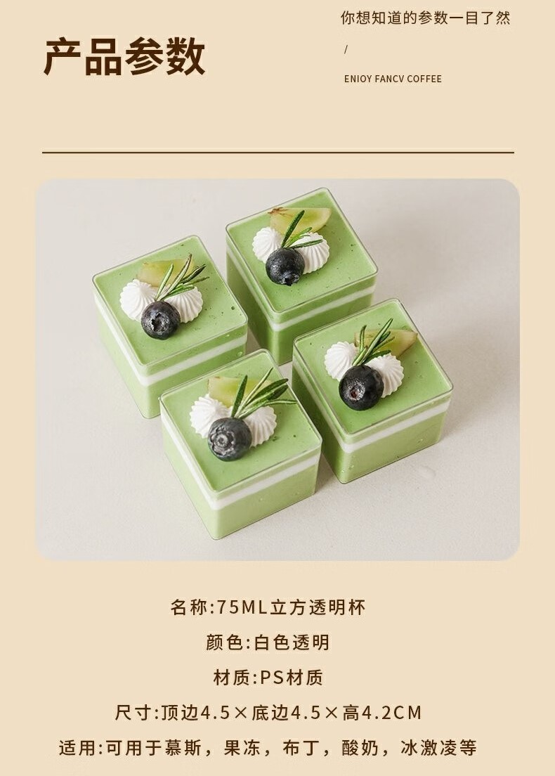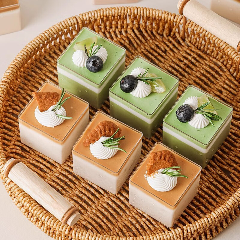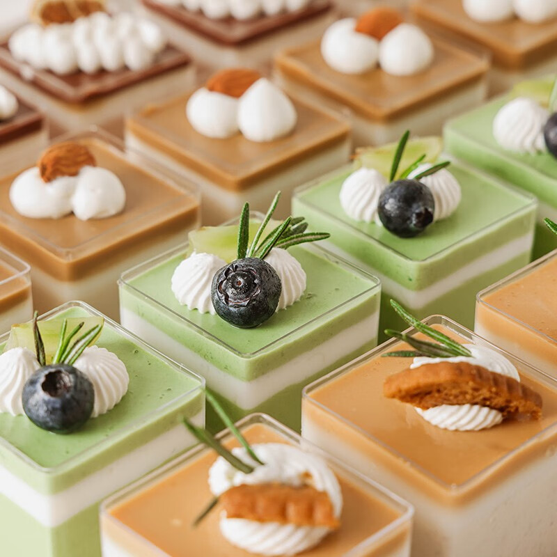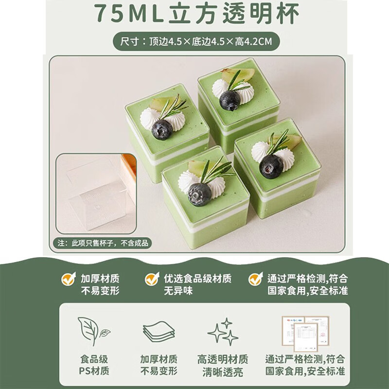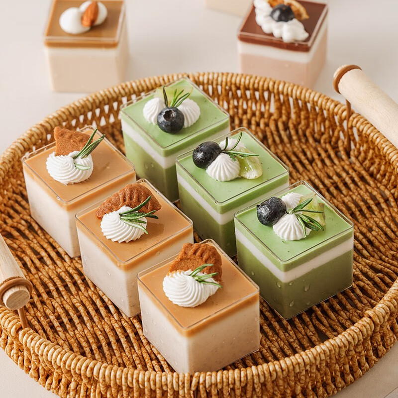 (特)Vinland英国慕斯果立方杯果冻杯方形布丁一次性塑料小杯子蛋糕盒透明盒子
