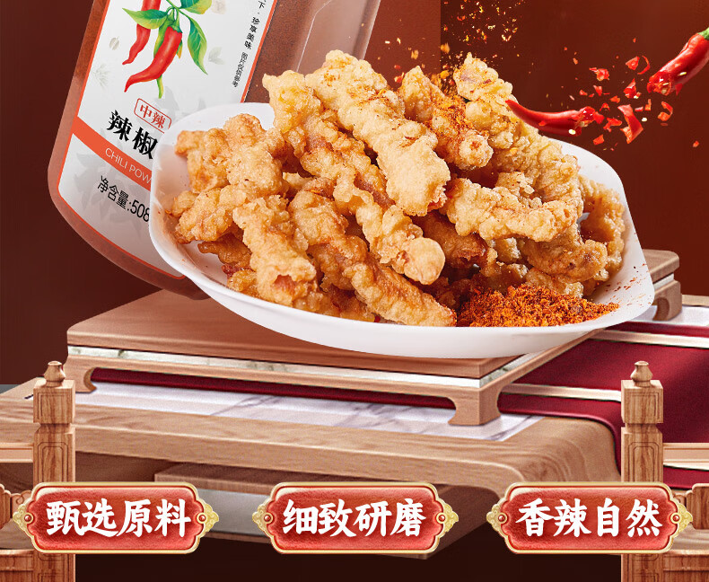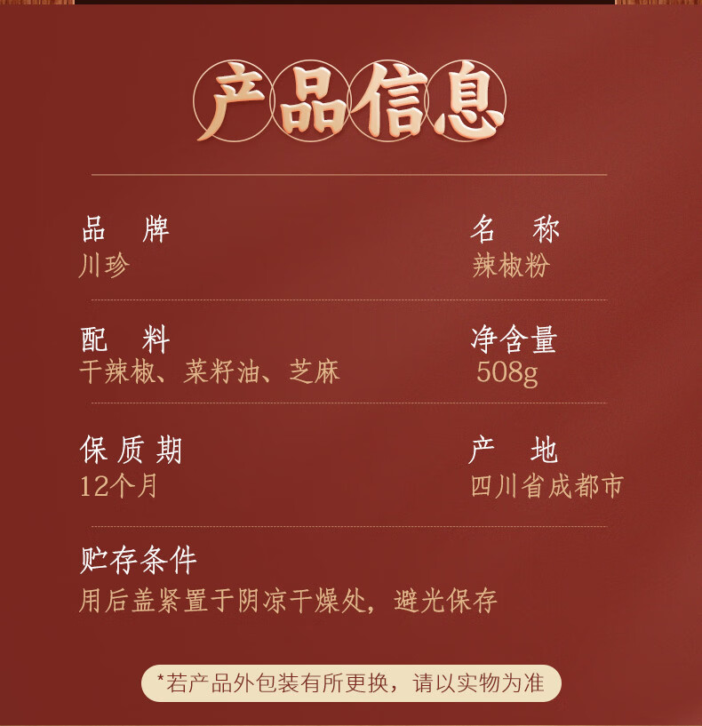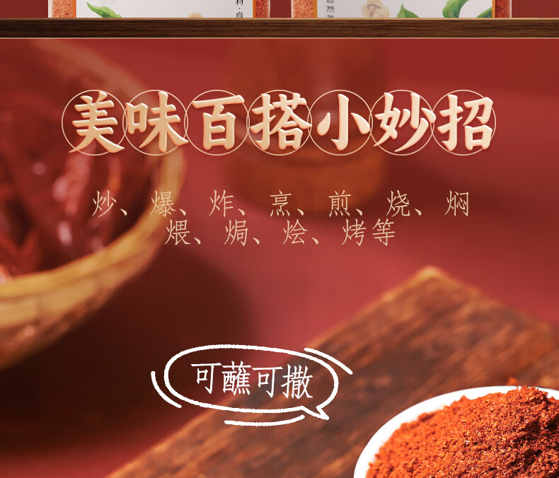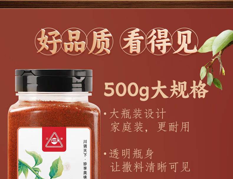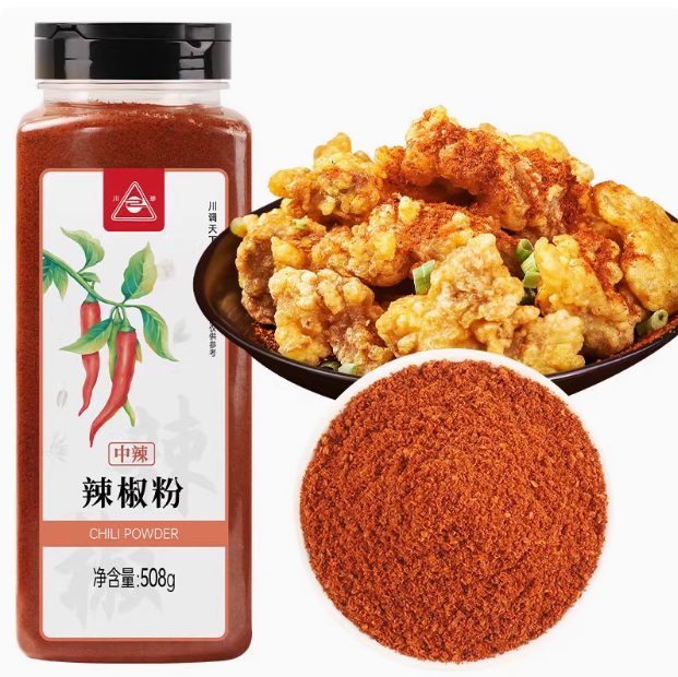 (特)川珍辣椒粉508g 中辣细粉烧烤撒料香辣蘸料火锅烤肉干碟瓶装