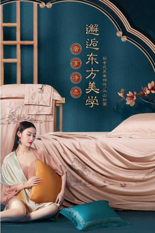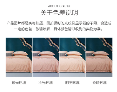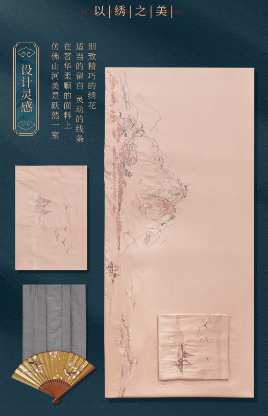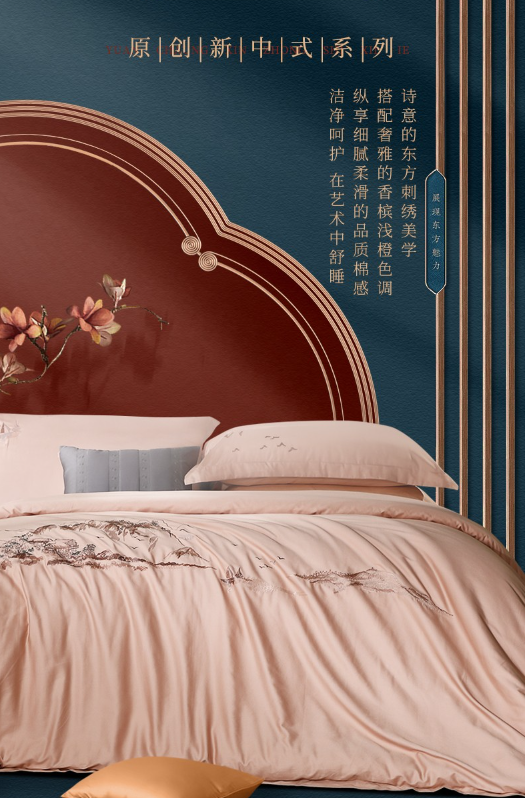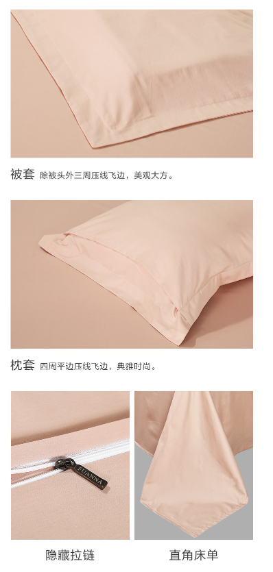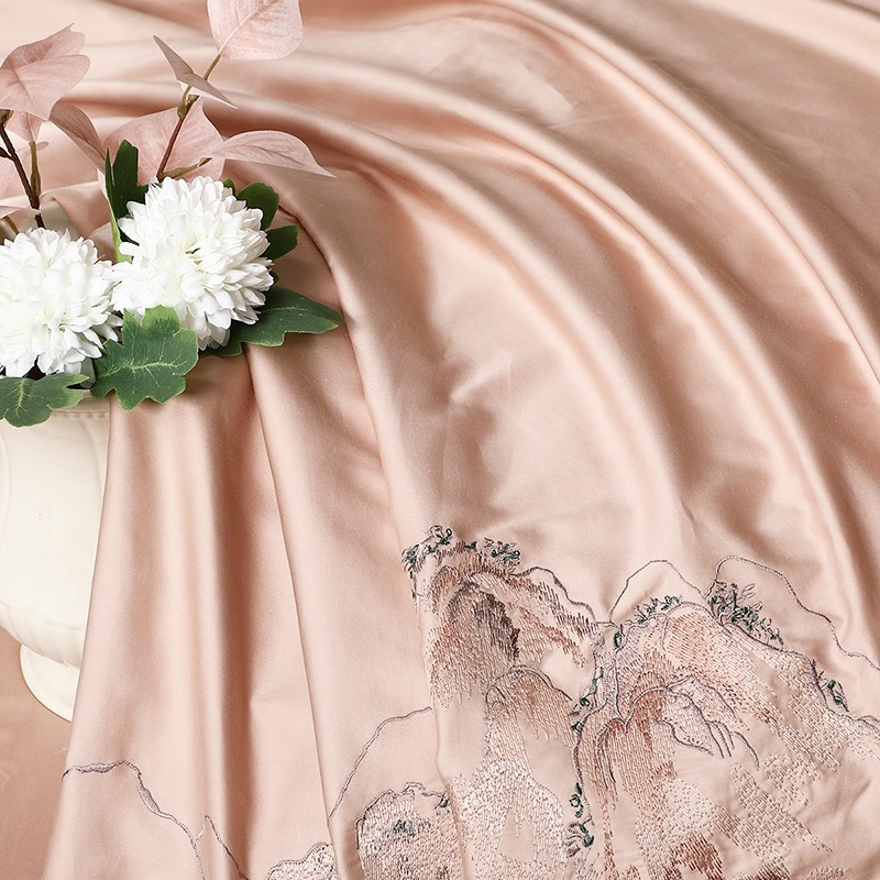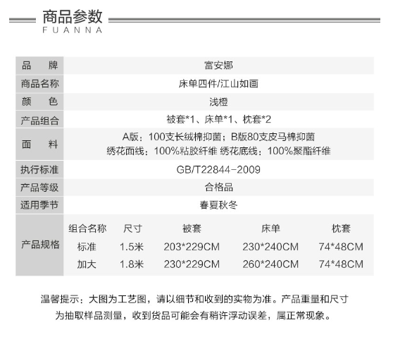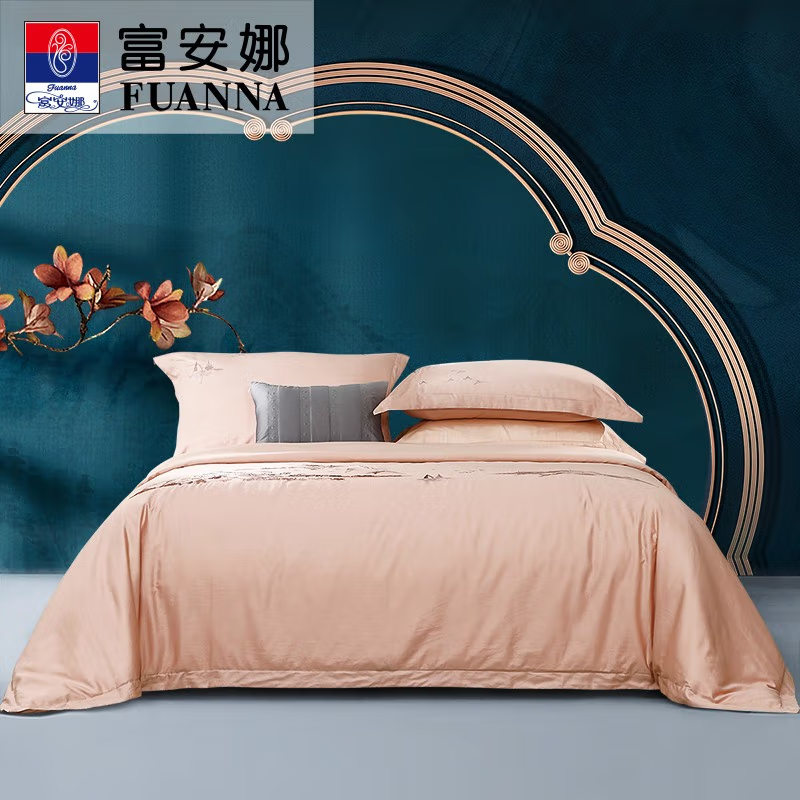 (特)富安娜家纺 100支长绒棉四件套纯棉国风素绣套件床上用品双人加大
