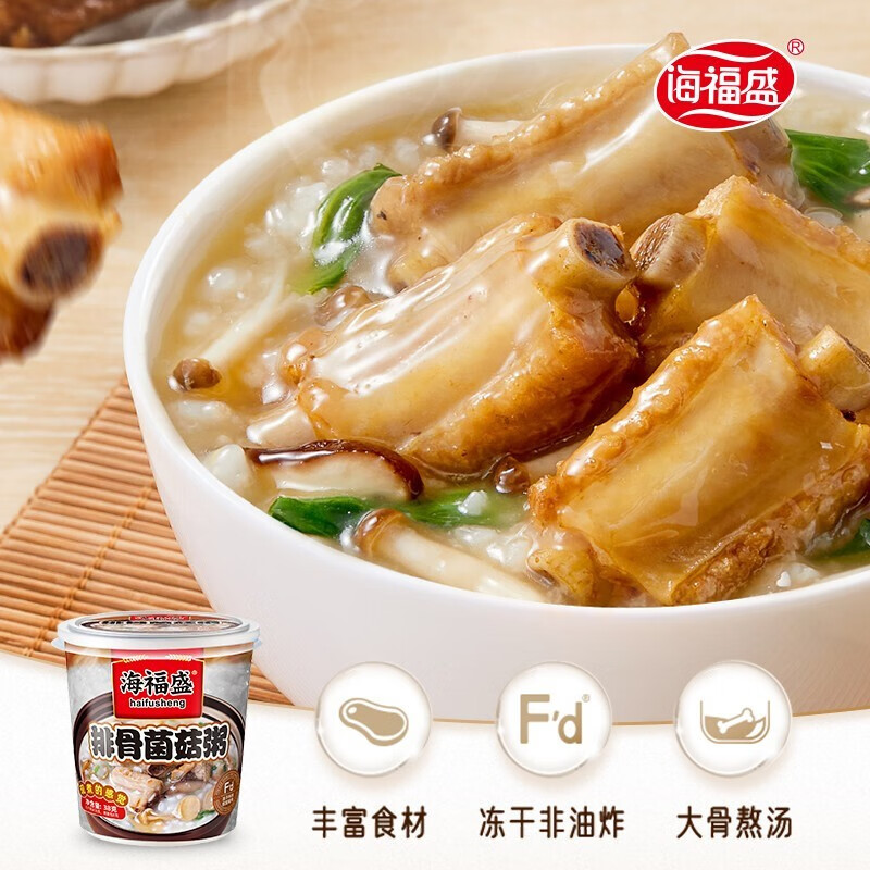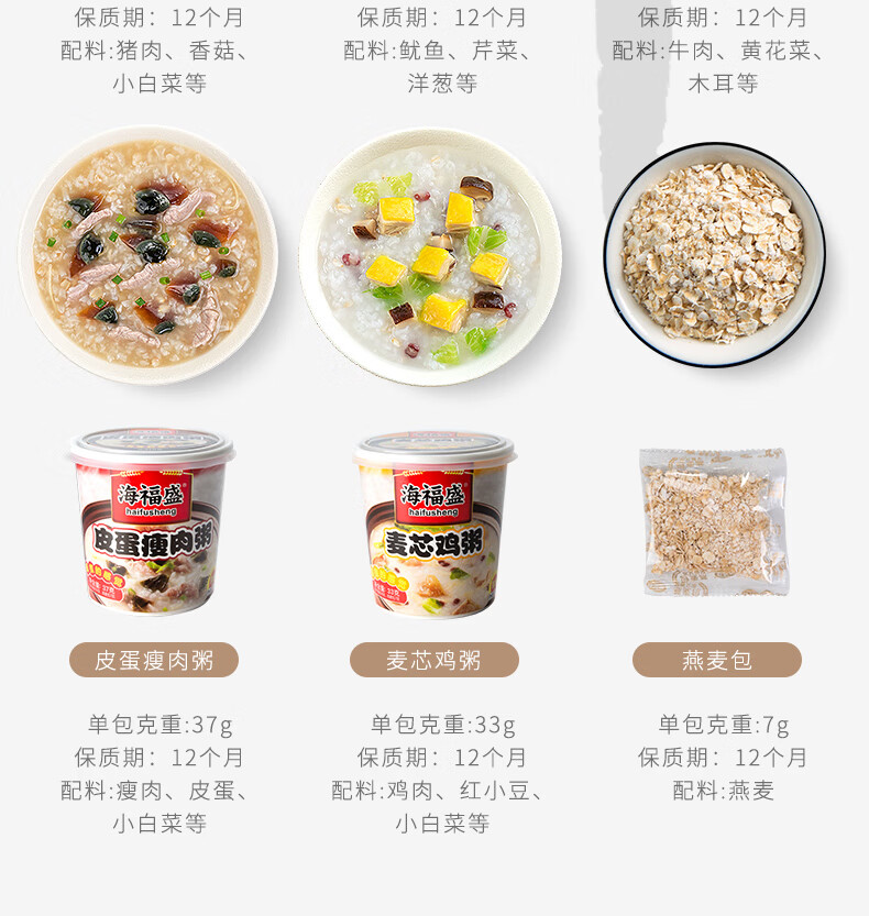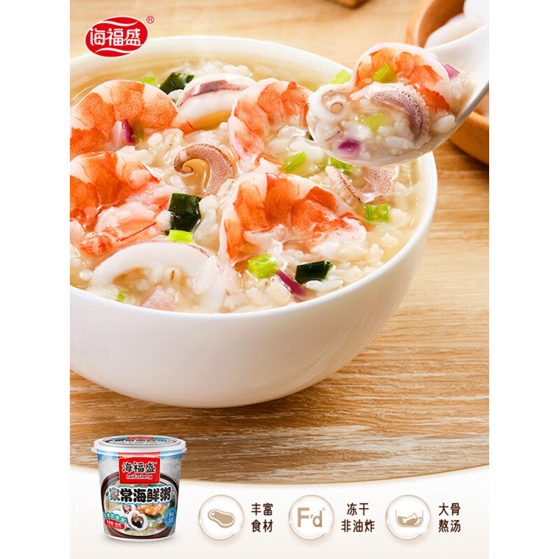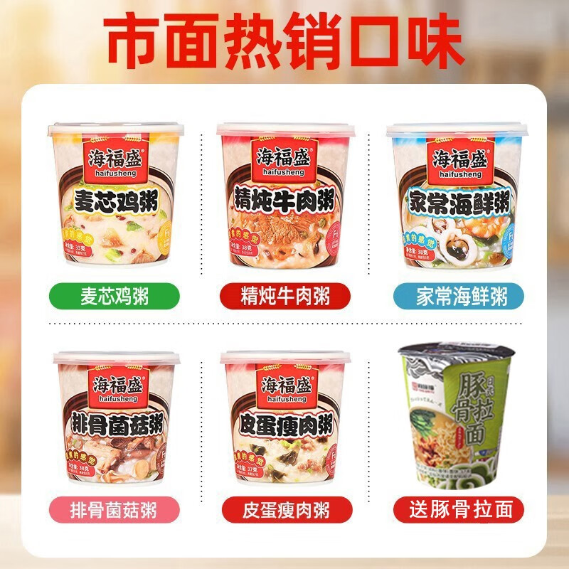 (特)海福盛 速食粥冻干粥 10杯+2杯组合装海鲜面整箱混合稀饭即食早餐营养方便自热粥 尝鲜装6杯:5口味各1杯(+贈1杯豚骨拉面)
