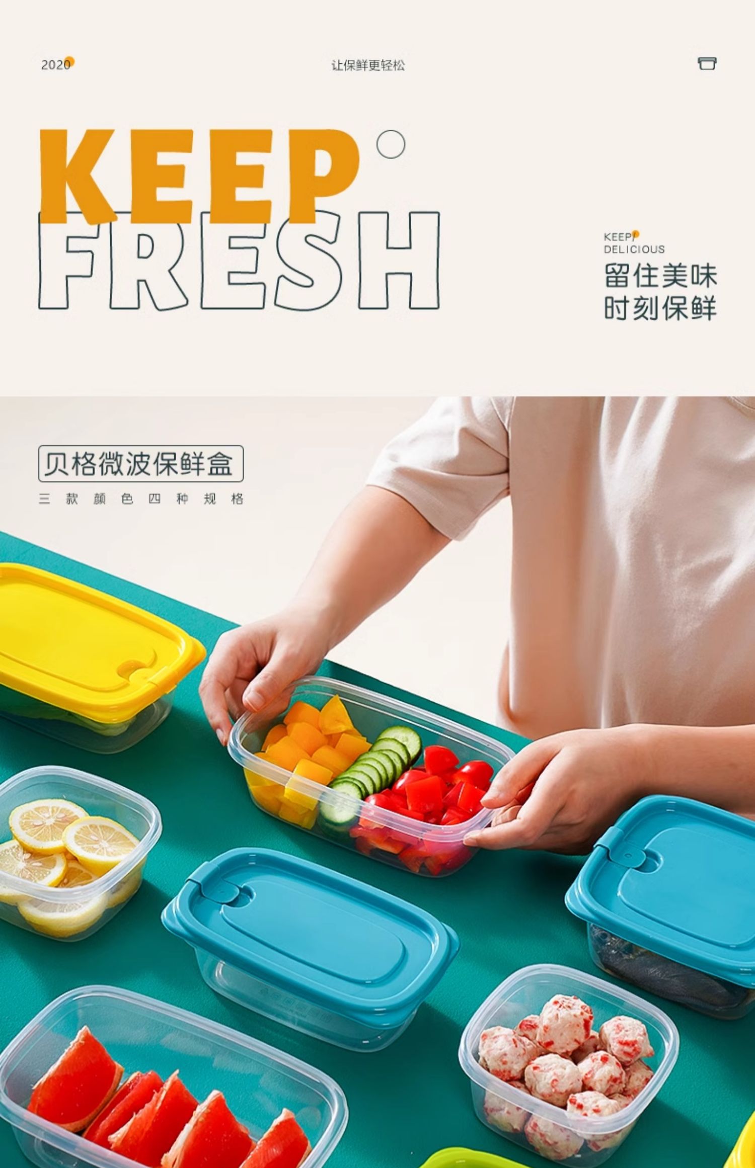 (特)塑料保鲜盒食品级微波炉加热饭盒冰箱冷冻野餐盒密封水果盒便当盒