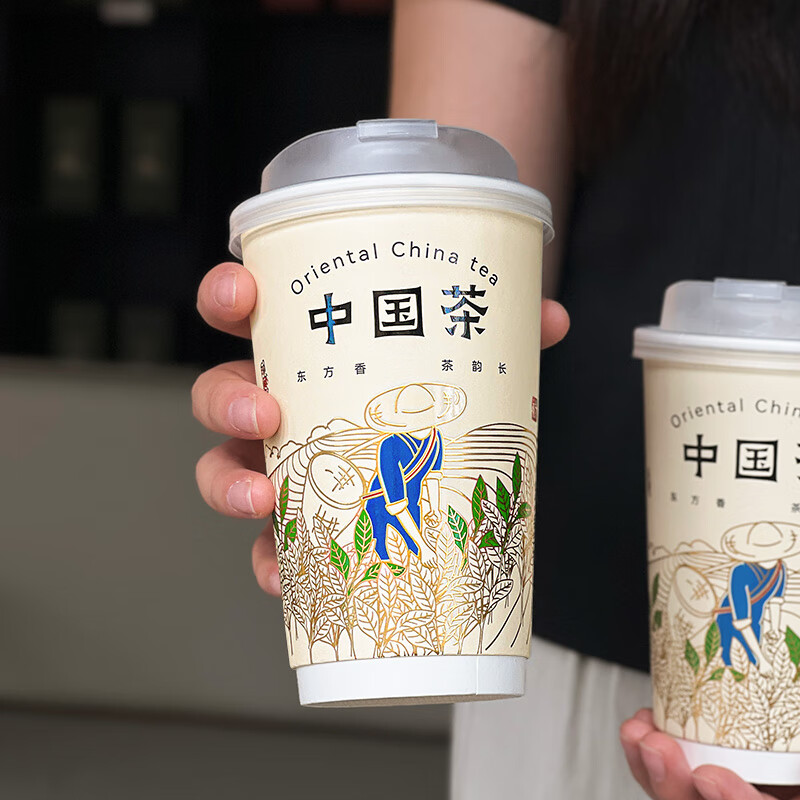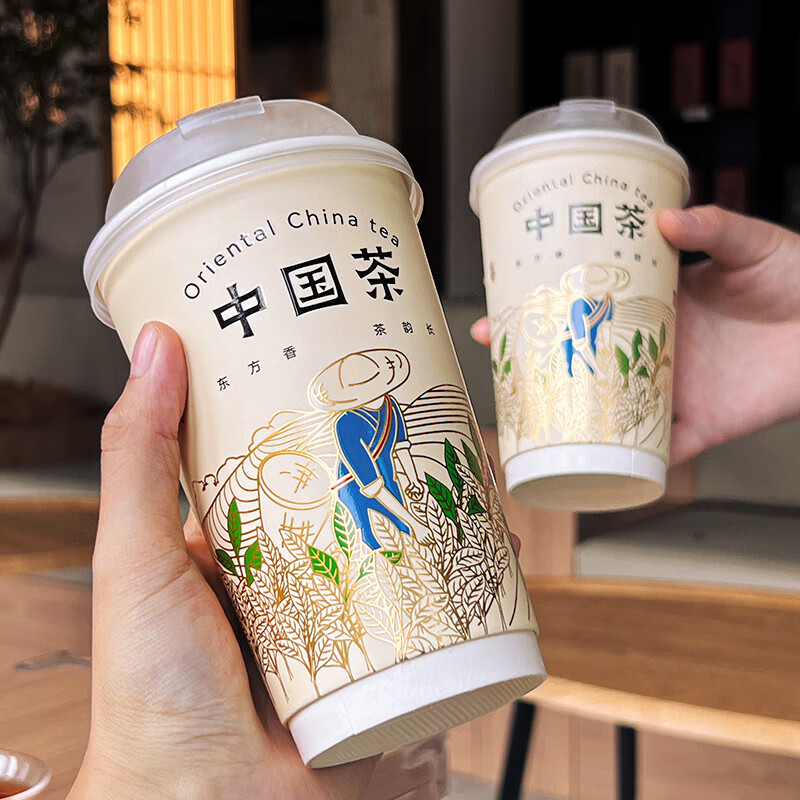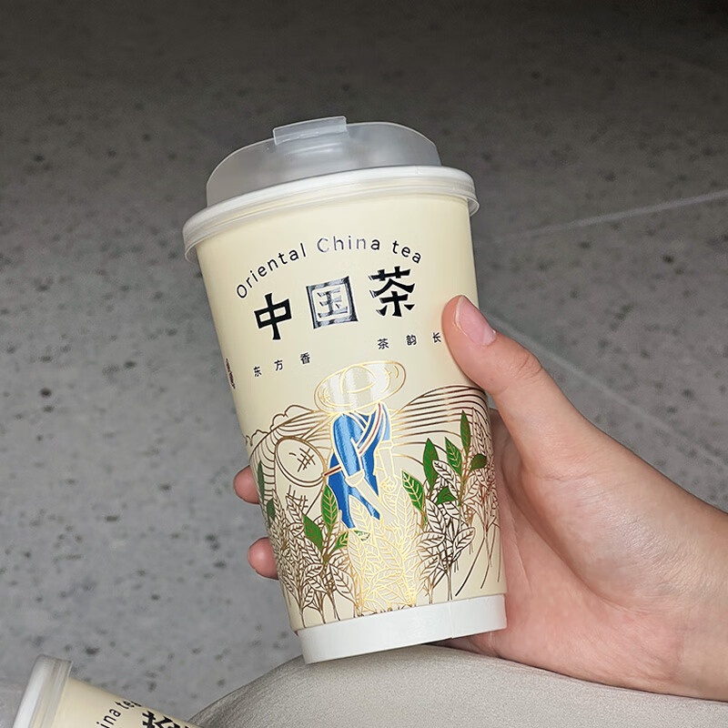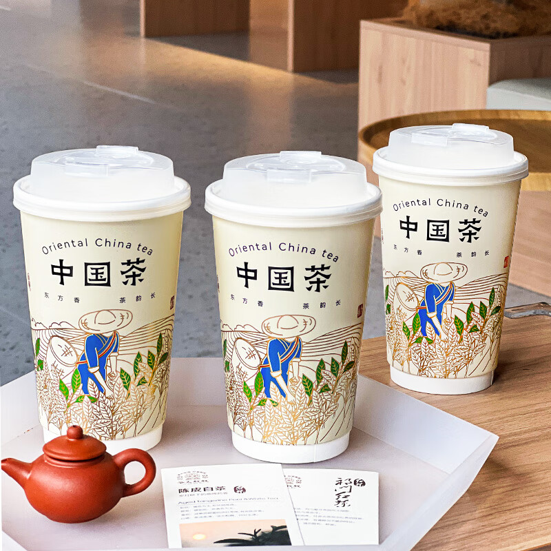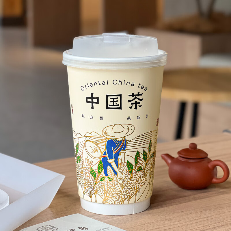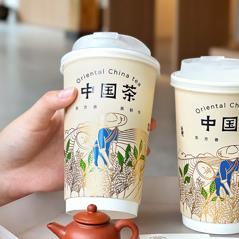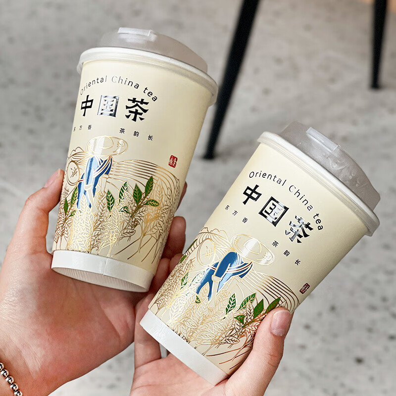 (特)【定制款】茶店杯子加厚国风商用热饮纸杯定制logo (热饮纸杯,22盎司双层纸杯,内白外白材质,冷烫亮金)