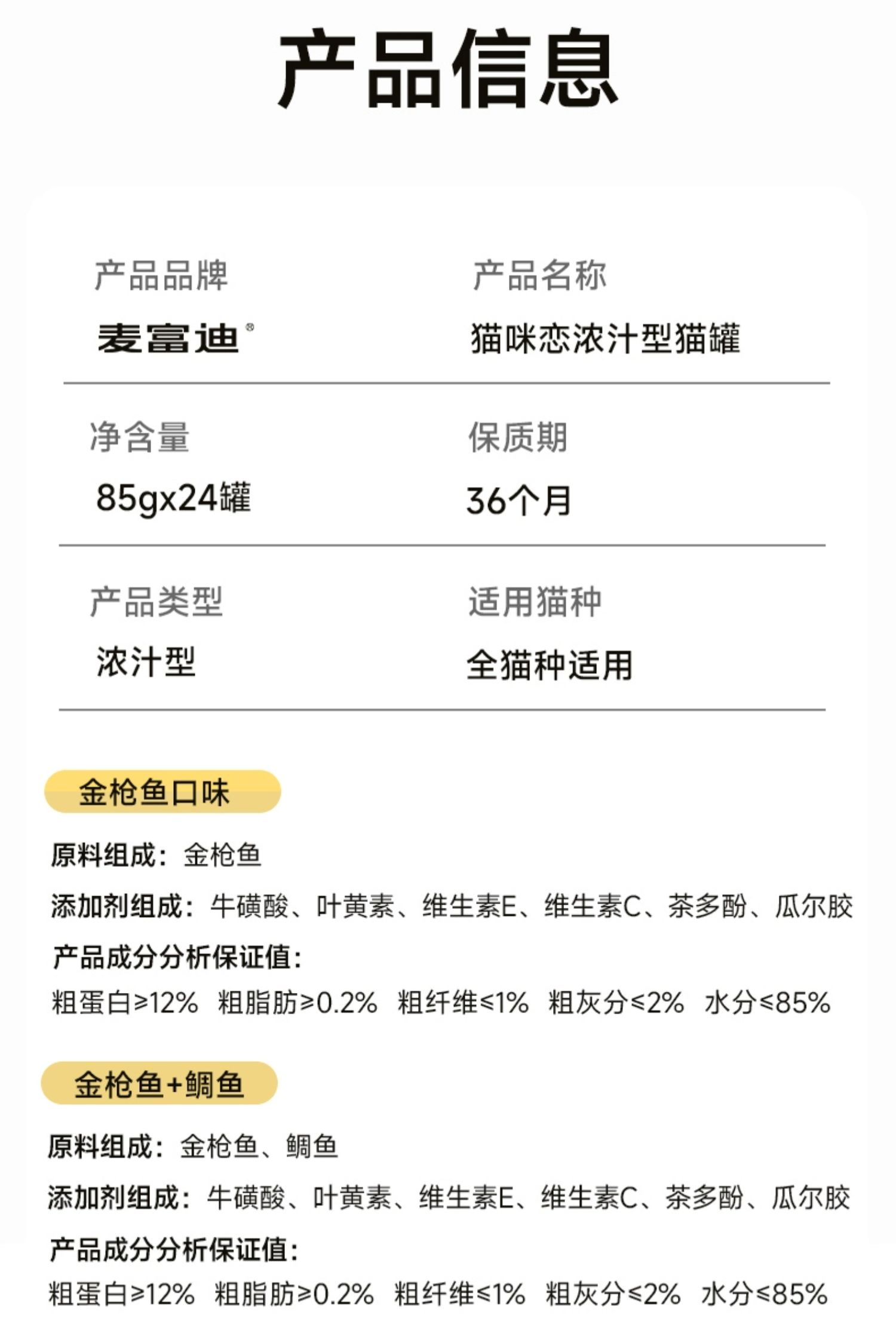 (特)麦富迪猫罐头营养增肥猫零食湿粮零食补水白肉猫条成幼猫咪85g*24