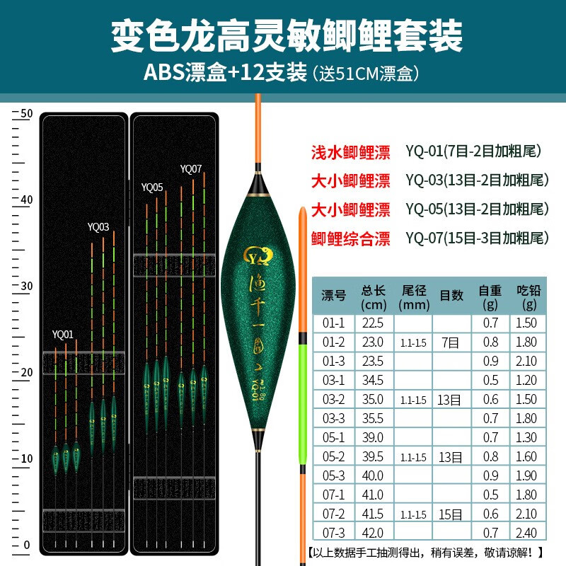 (特)杰米仕(JMISI)鱼漂套装全套加粗醒目超高灵敏浮漂轻口鲫鱼鲤鱼浅水野钓纳米漂盒 YQ变色龙 全能套装