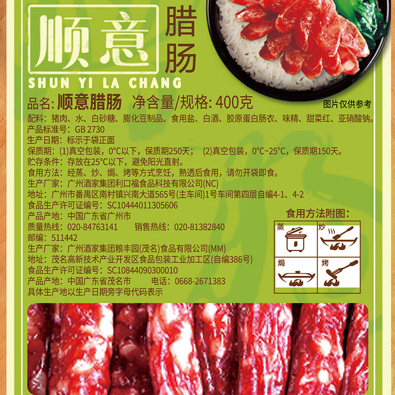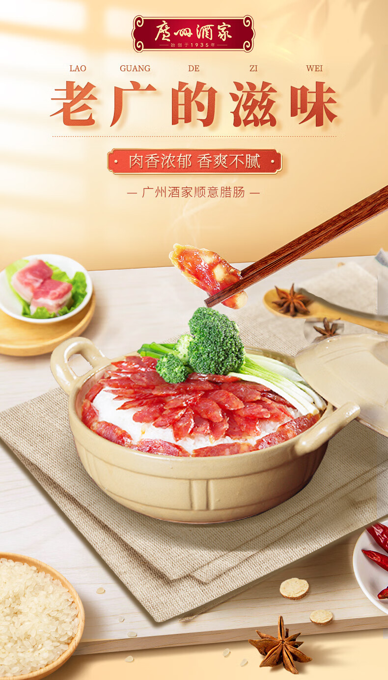 (特)秋之风广州酒家顺意经典腊肠 广式腊肠特产送礼首选 400g 顺意腊肠