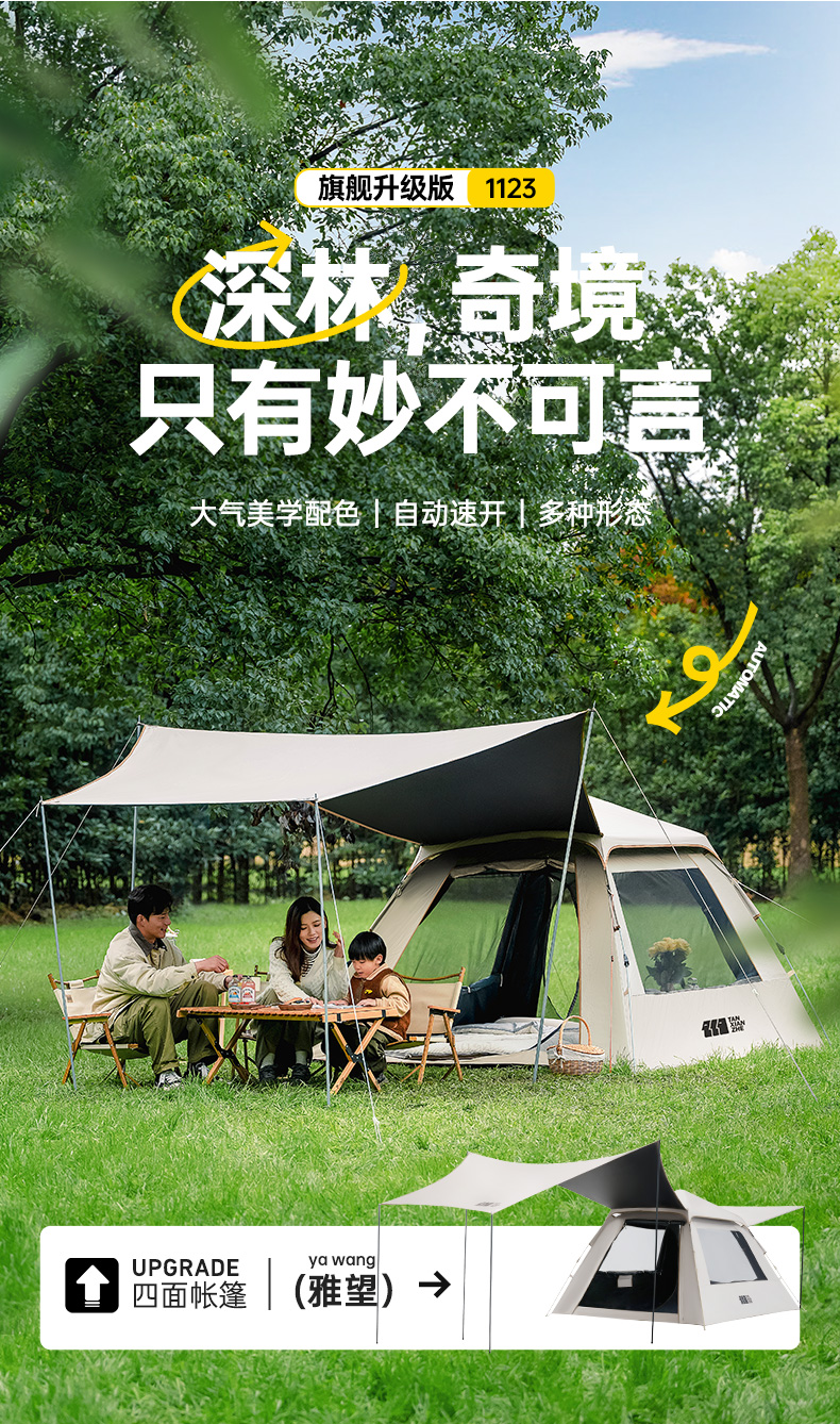(特)探险者帐篷户外露营全套装备折叠便携式野营过夜防雨加厚自动天幕