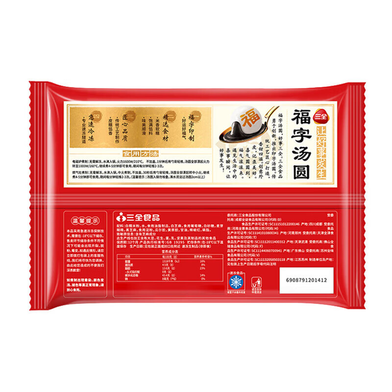 (特)三全福字汤圆320g黑芝麻宁波福气元宵广式早茶早餐速冻