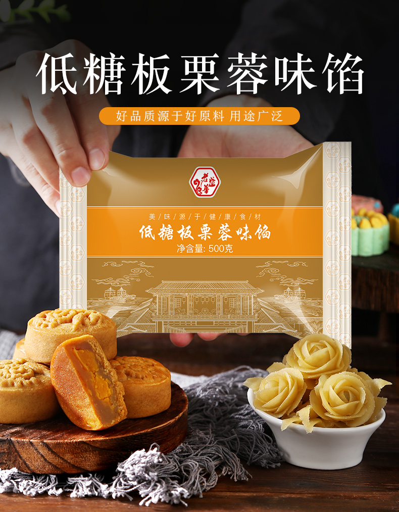(特)皮小贱低糖板栗馅栗子蓉红豆沙紫薯黑芝麻奶黄包子白莲蓉月饼馅料