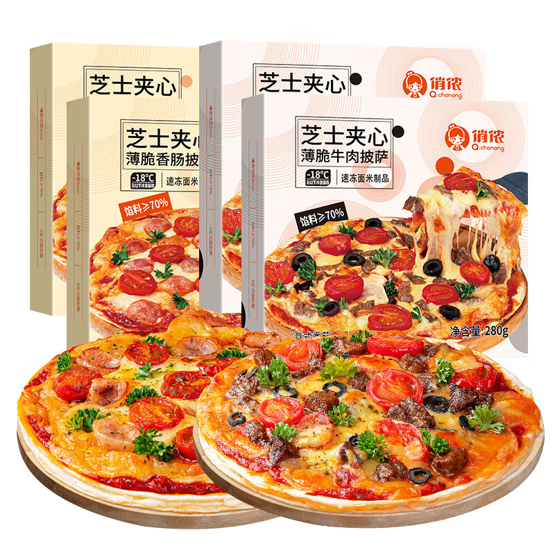 (特)俏侬芝心薄脆披萨组合装(8英寸意式香肠280g*2盒+牛肉280g*2盒)