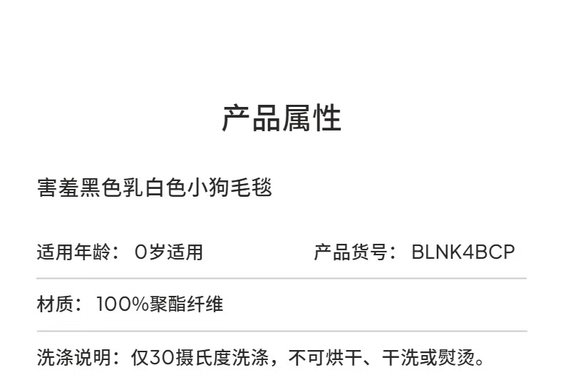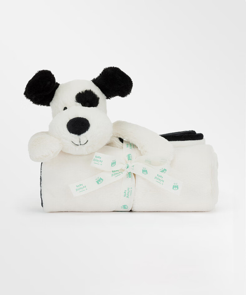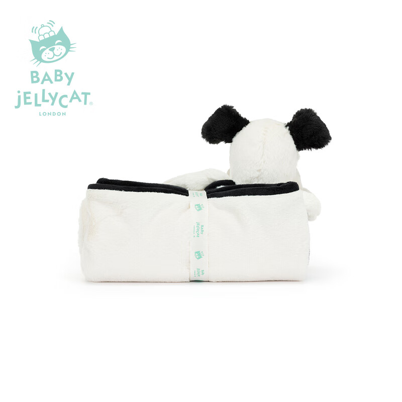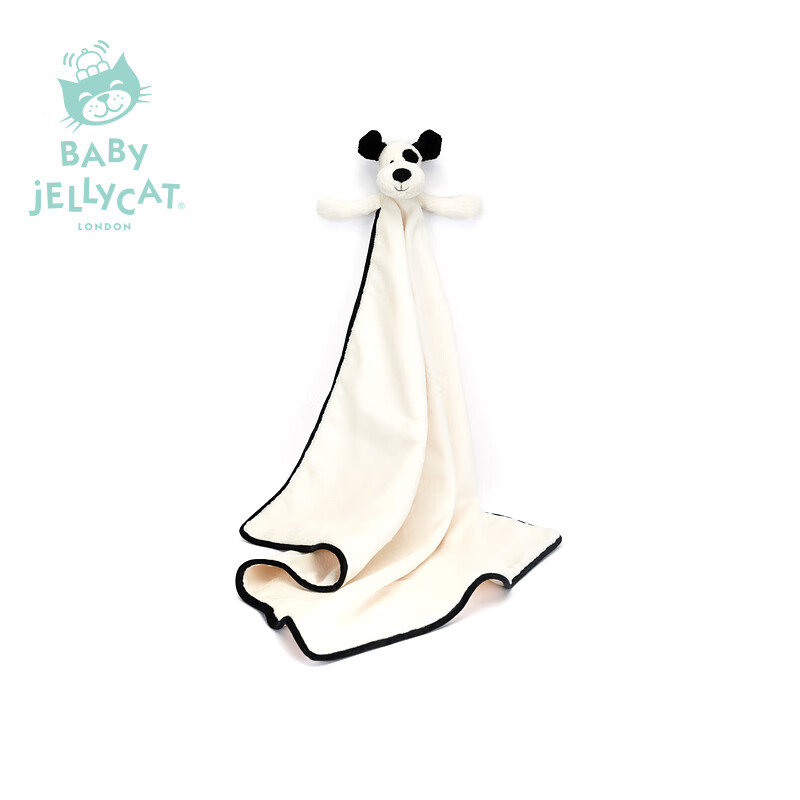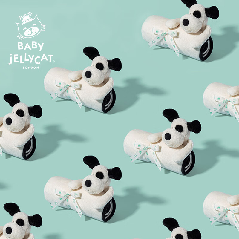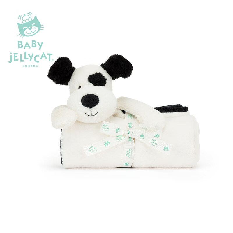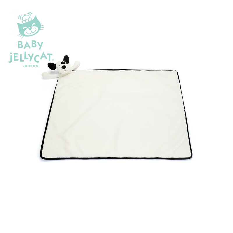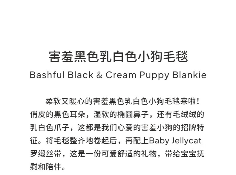 (特)Jellycat新生系列害羞黑色乳白色小狗毛毯婴儿盖单陪伴儿童毛毯生日礼物 黑色和米色 高56 X 宽70 CM