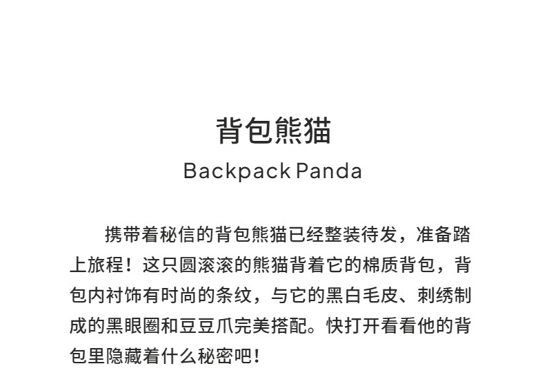 (特)Jellycat背包熊猫可爱毛绒玩具柔软安抚熊猫玩偶娃娃送礼生日礼物 背包熊猫 高22 X 宽10 CM