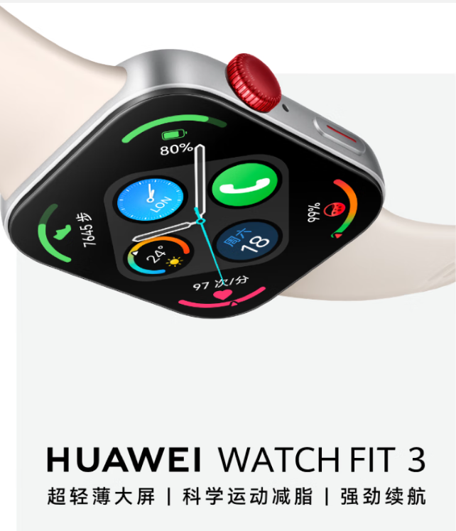 (特)华为WATCH FIT 3 智能手表月光白轻薄大屏运动减脂长续航 男女情侣手表