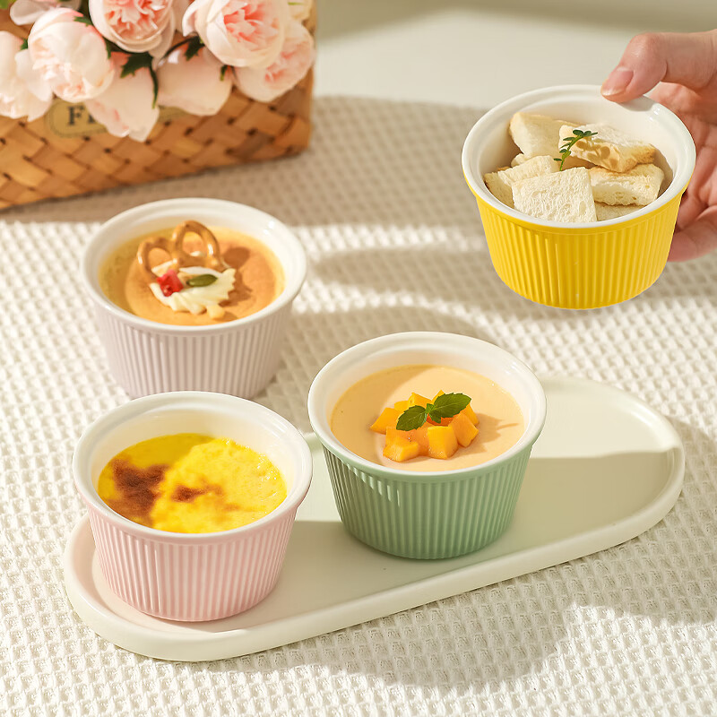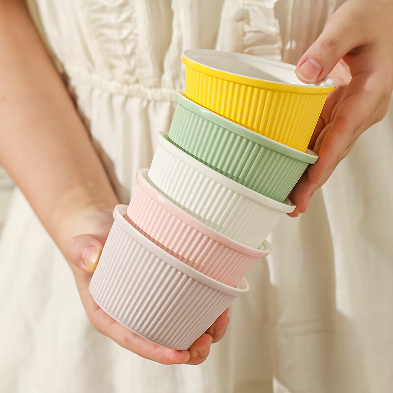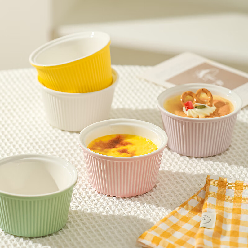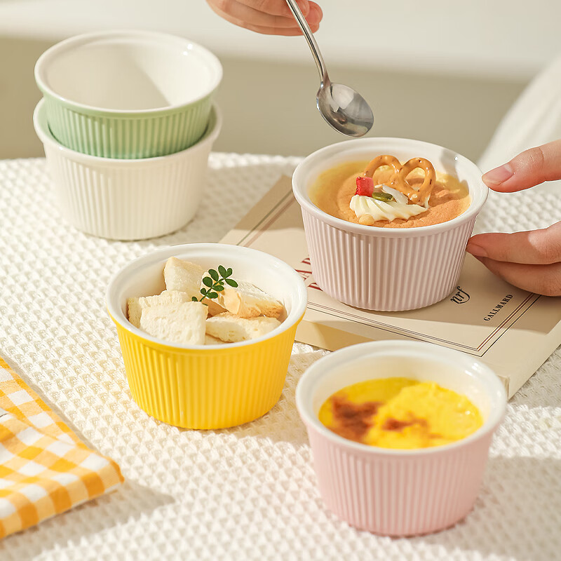 (特)川岛屋舒芙蕾烤碗空气炸锅烤箱专用碗烘焙甜品蛋糕小碗焦糖布丁杯 混色5只装(绿+黄+粉+紫+白)