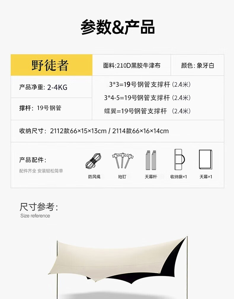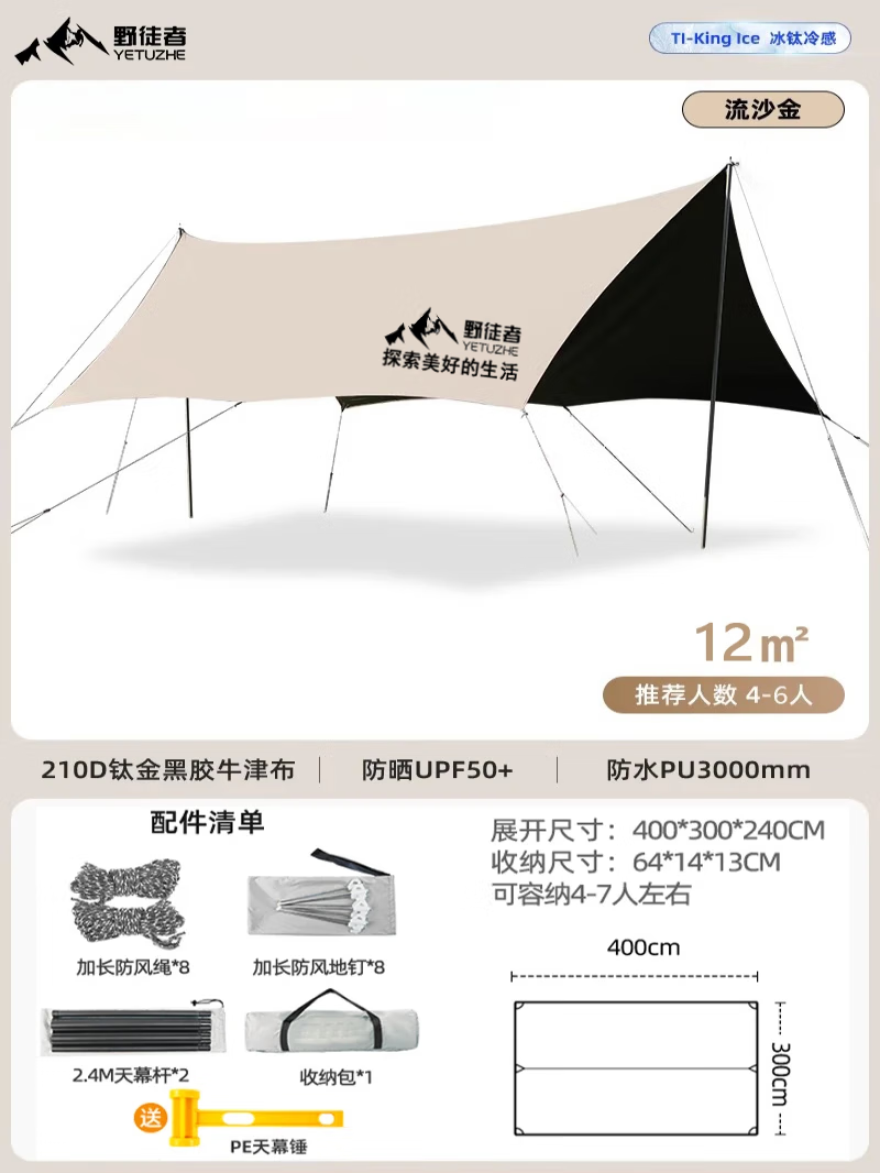 (特)野徒者 遮阳棚野营防晒防雨棚(南京江韵项目专拍,拍前请咨询客服)