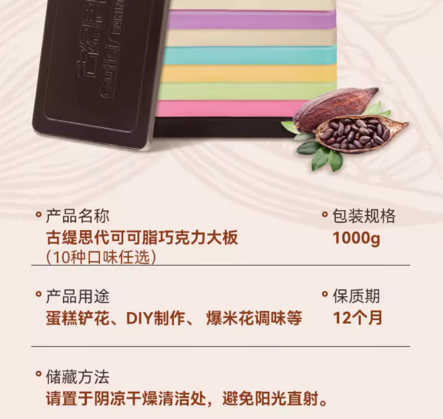 (特)古缇思黑白巧克力砖块1kg烘焙专用大块淋面雪糕专用(代可可脂)