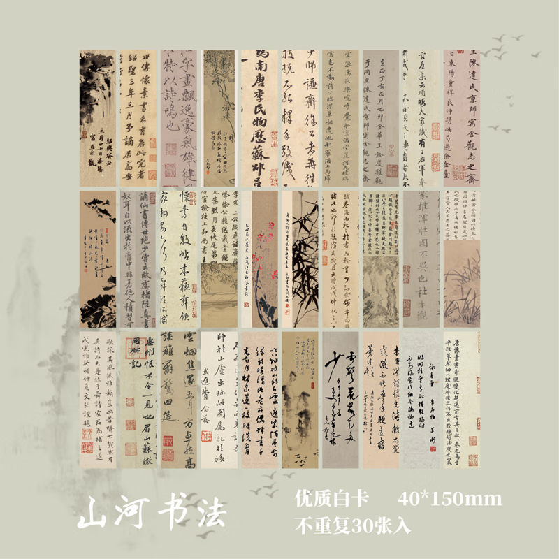 (特)优米帕30张国风书法文字吊牌书签古风竹林风景阅读索引书夹手帐装饰卡片