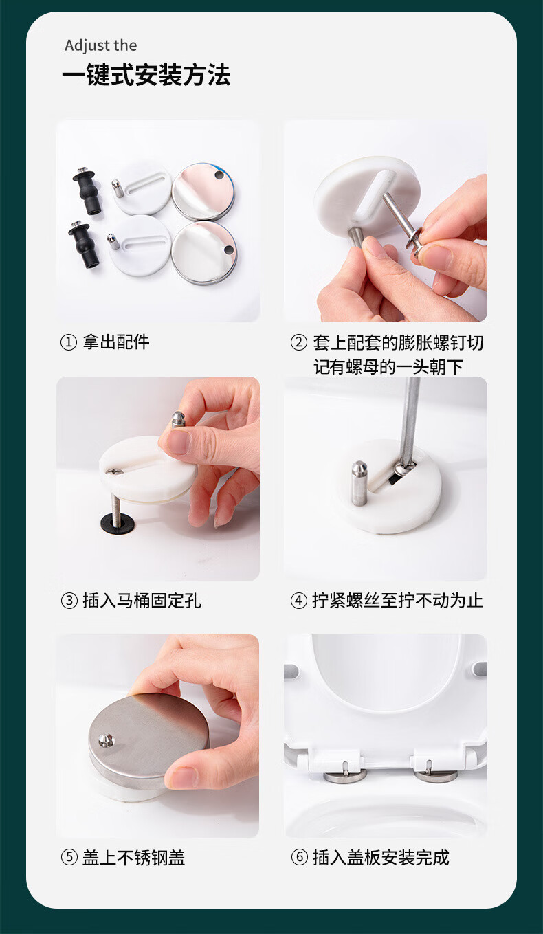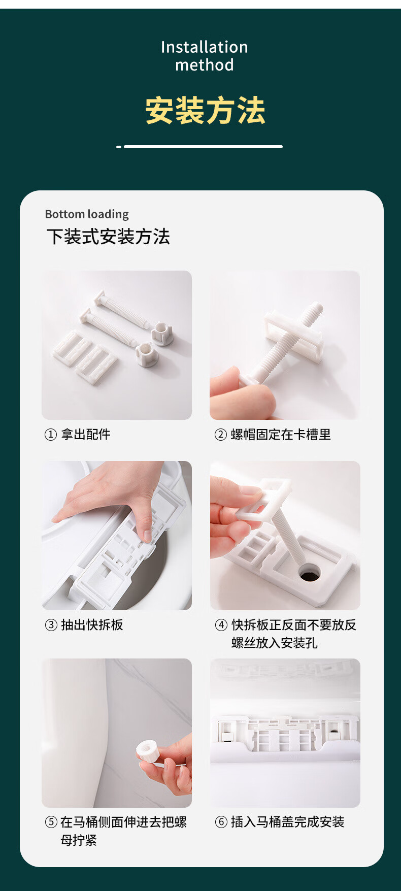 (特)贝意品马桶盖配件固定螺丝通用坐便器盖板膨胀螺栓连接件卡扣老式螺母