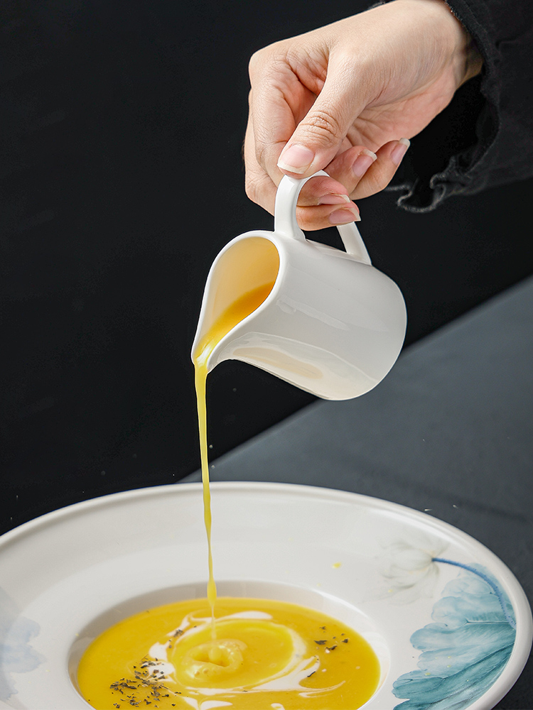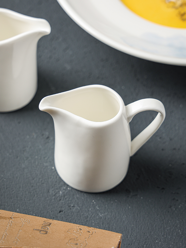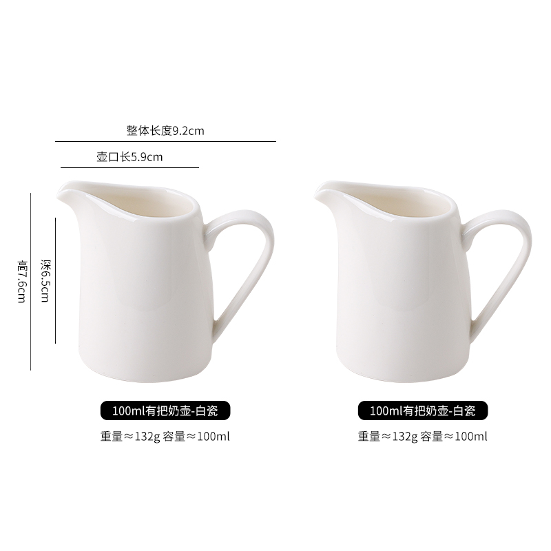 (特)纯白陶瓷咖啡小奶盅斗料汁壶罐牛排酱汁盅带把手柄奶勺简约尖嘴杯