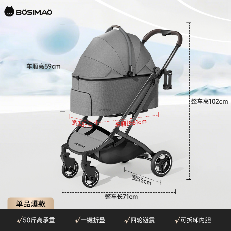 (特)BOSIMAO宠物折叠推车狗狗猫咪外出专用轻便手推车蓝车分离宠物车