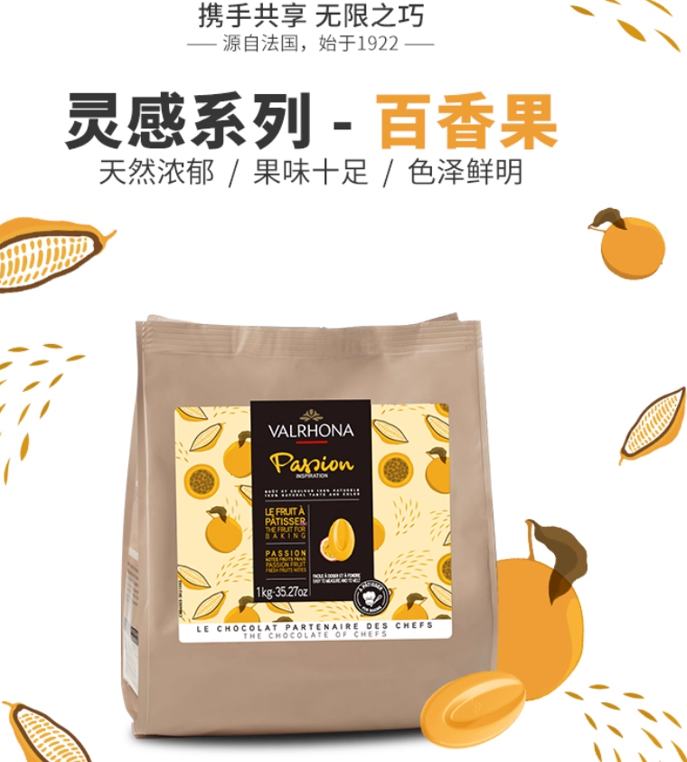 (特)法芙娜原料法国进口烘焙纯可可脂零食灵感百香果巧克力币豆1千克
