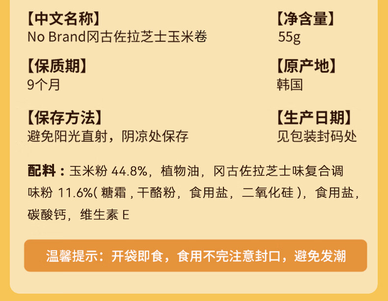 No Brand诺倍得玉米卷(南京江韵项目专拍,拍前请咨询客服)