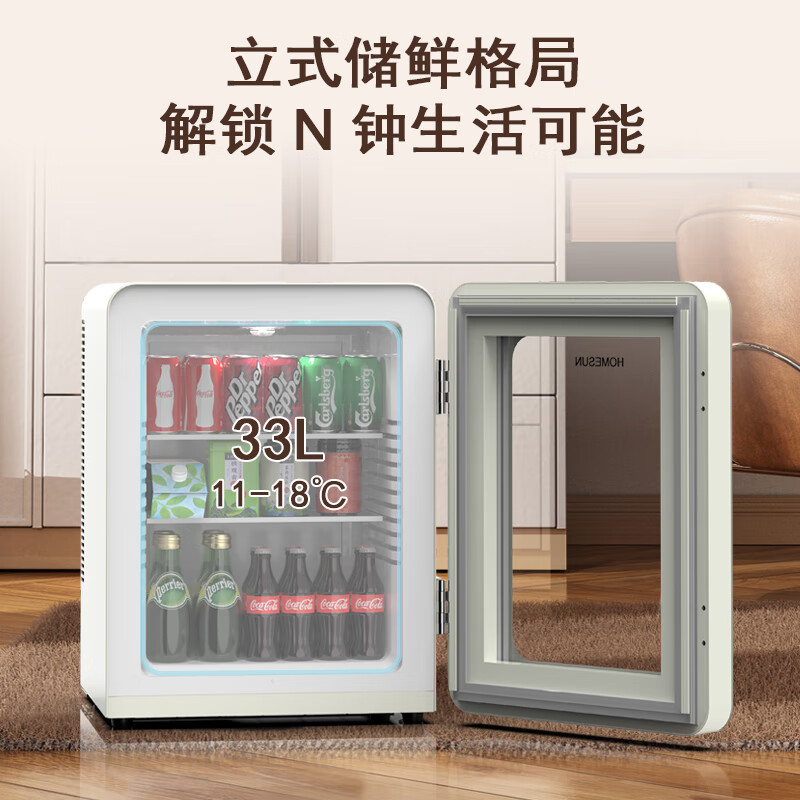(特)奥达信【新品】复古小冰箱静音家用客厅桌面冷藏冷冻保鲜美妆冰箱迷你茶叶保鲜柜冰吧学生宿舍床头冰箱 BCG41E-奶油白玻璃门(静音款)