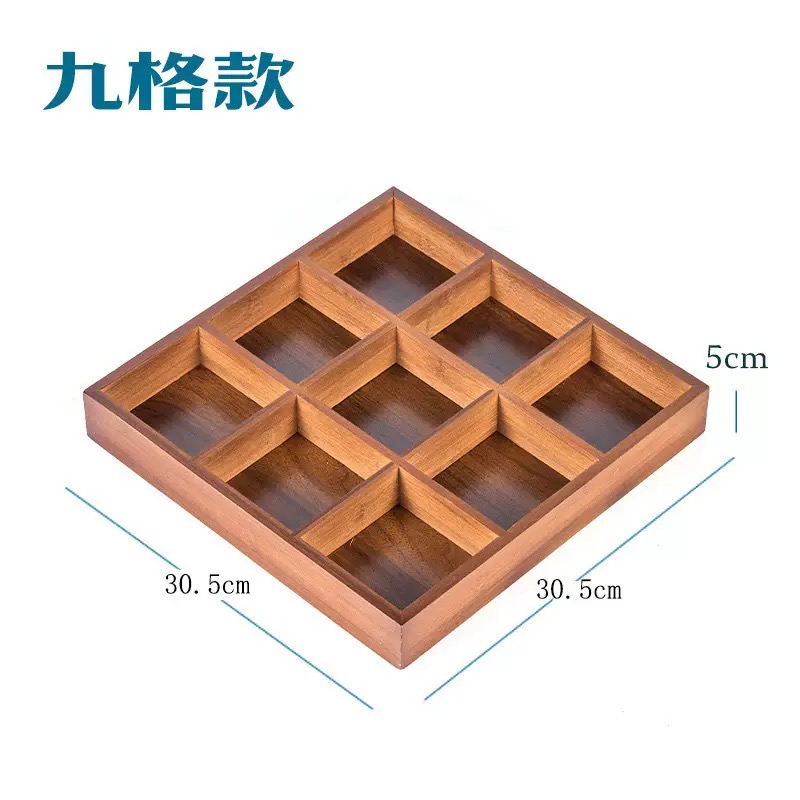 (特)四宫格干果盘围炉煮茶点心盘零食水果干果盒九宫格托盘木制茶点盘