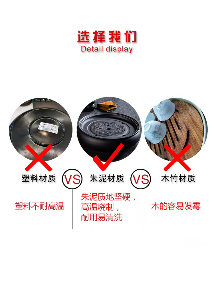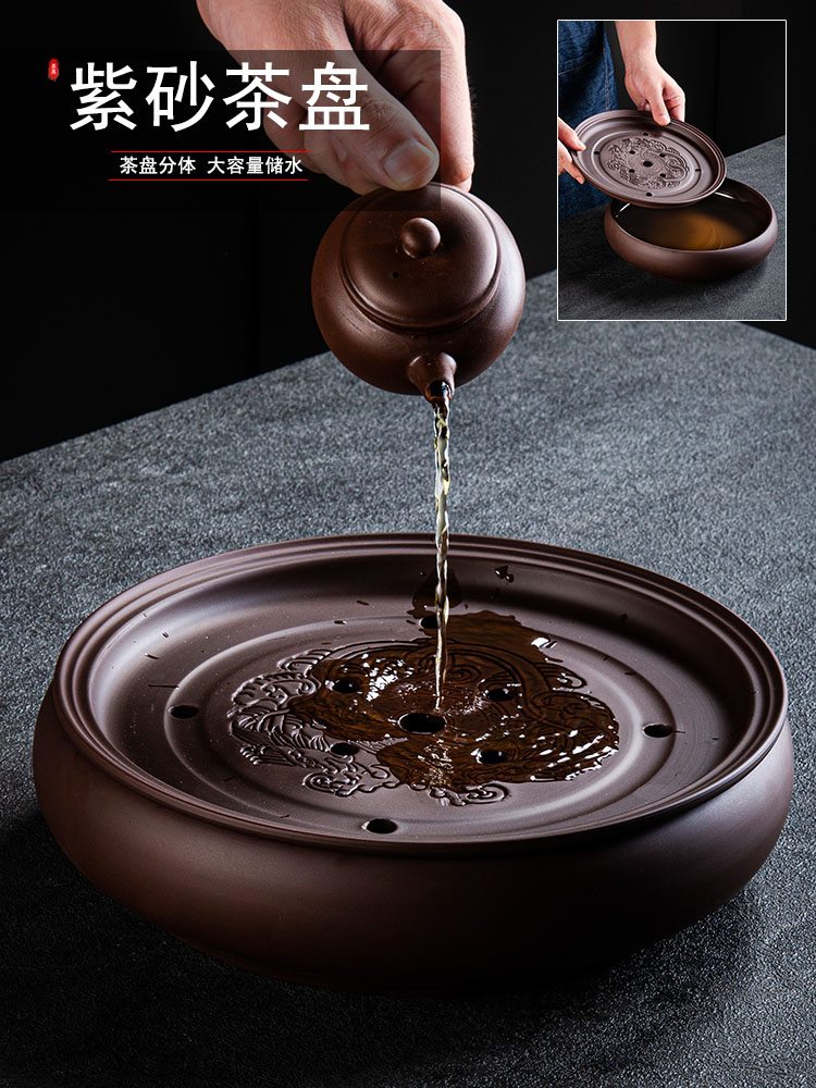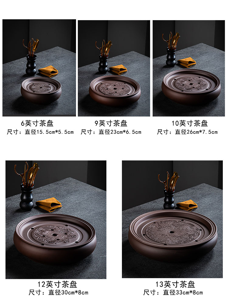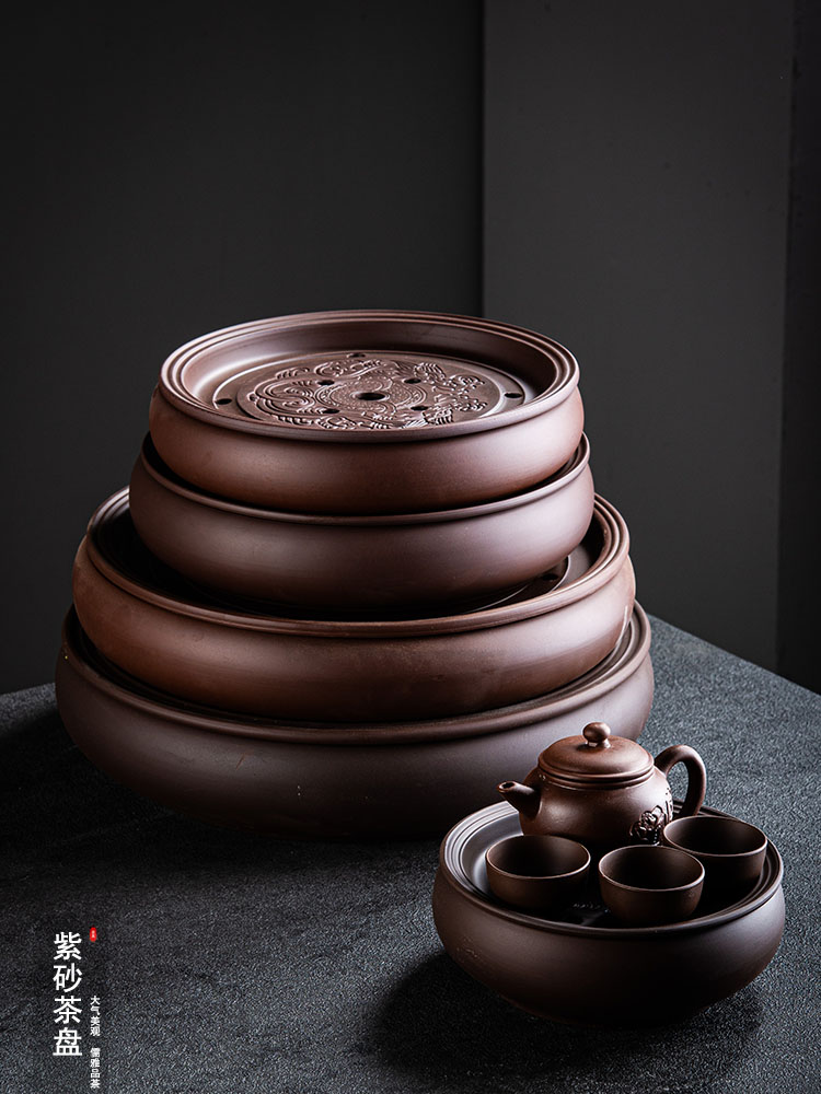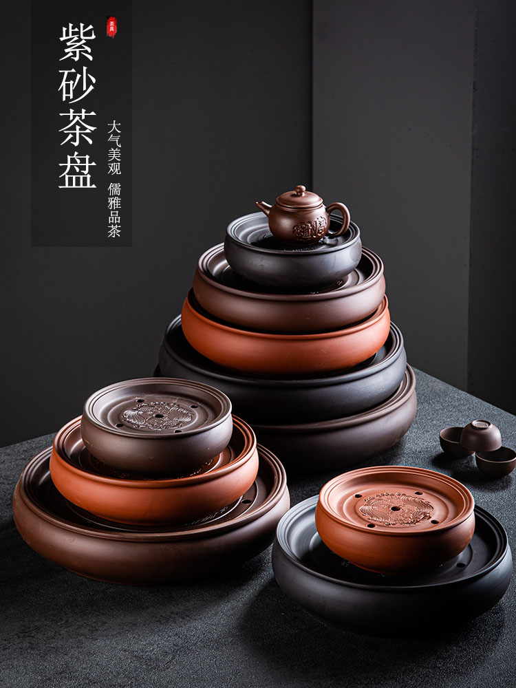紫砂陶瓷功夫茶具储水茶盘家用现代简易圆形沥水托盘小型茶台茶托