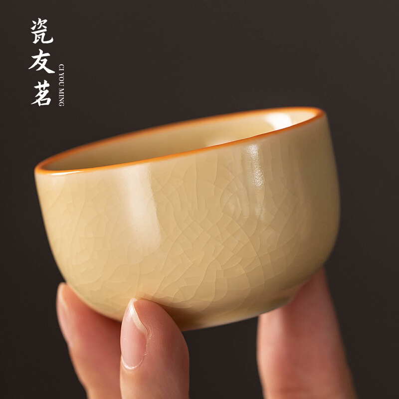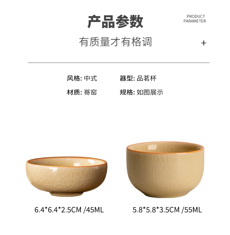 (特)秘色哥窑茶杯冰裂纹家用功夫茶具主人杯个人品茗杯单杯泡茶杯茶盏