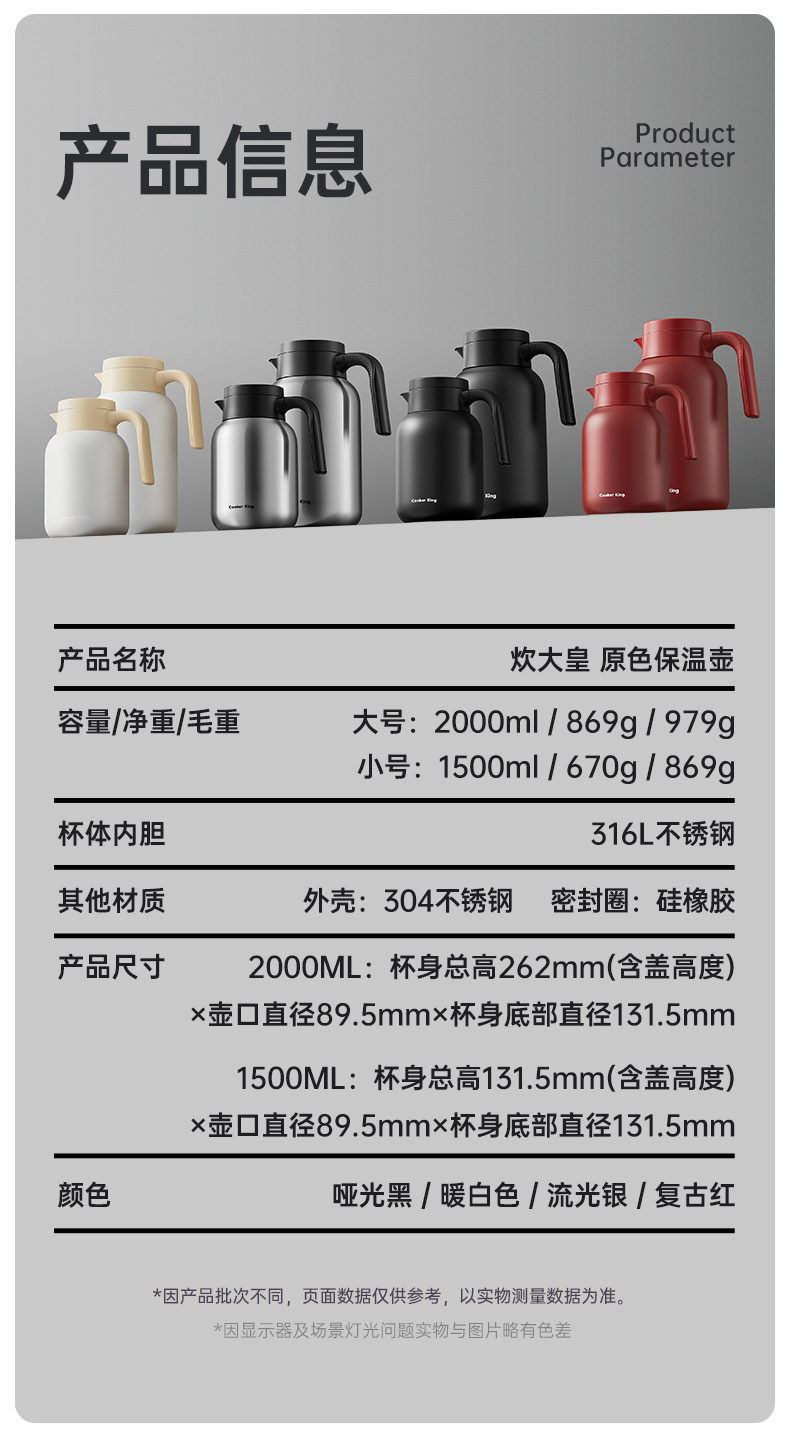 (特)炊大皇保温壶家用大容量水壶316L不锈钢内胆暖壶宿舍办公室热水瓶