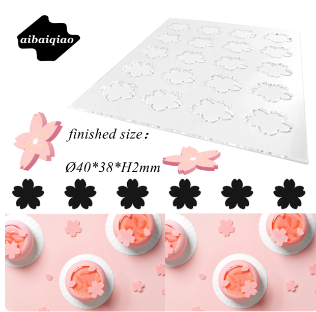 (特)爱百巧 20连樱花巧克力片插件模具 法式甜品慕斯巧克力装饰模花型