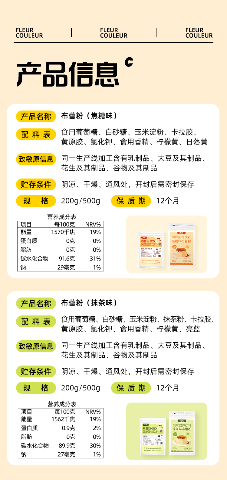 (特)法采焦糖布蕾粉抹茶奶茶布丁烘焙蛋糕夹心商用原料