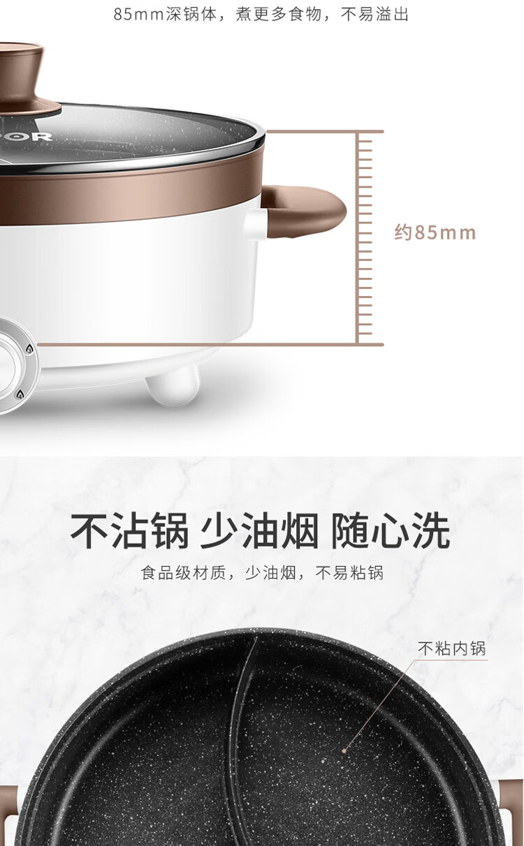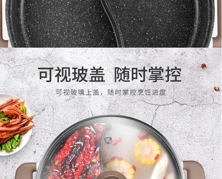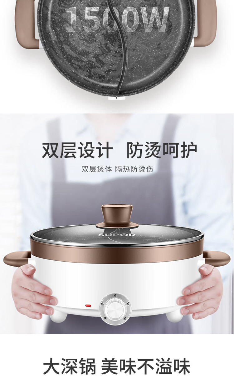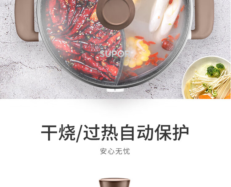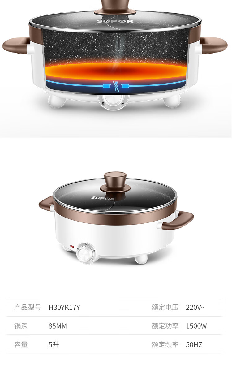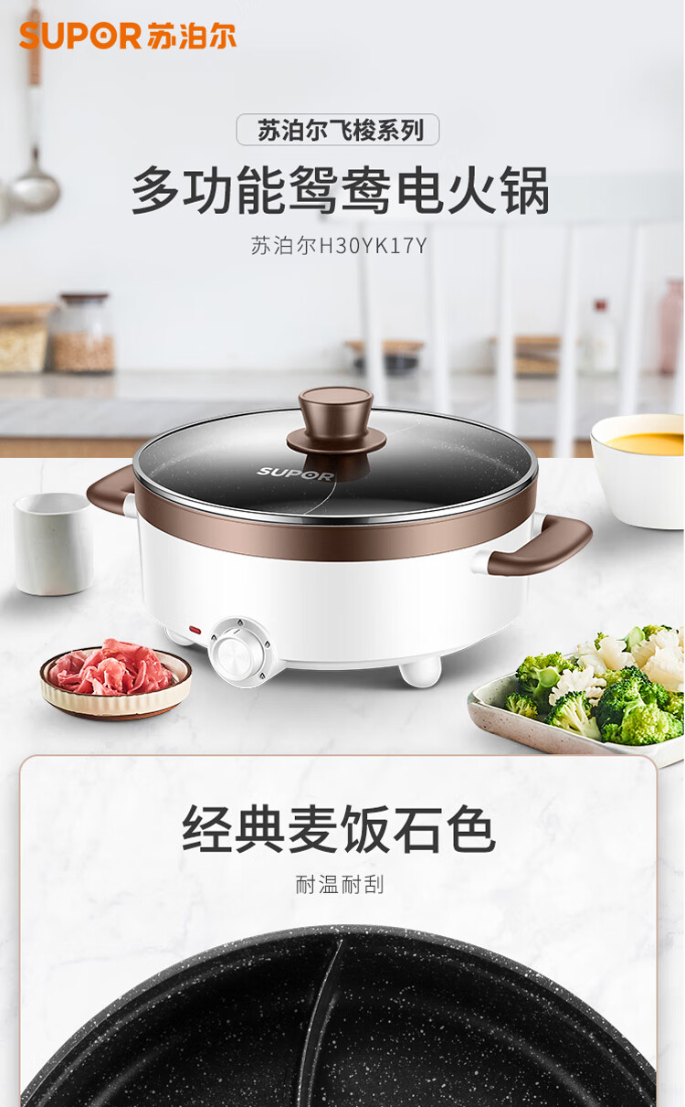 苏泊尔(SUPOR)电火锅5L大容量多功能鸳鸯电火锅炖煮涮串家用多功能不沾锅4档火力H30YK17Y