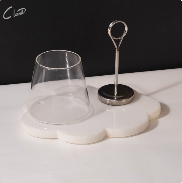 (特)创意云朵天然大理石盘分子料理位上立体棉花糖冷饮托盘个性甜品盘