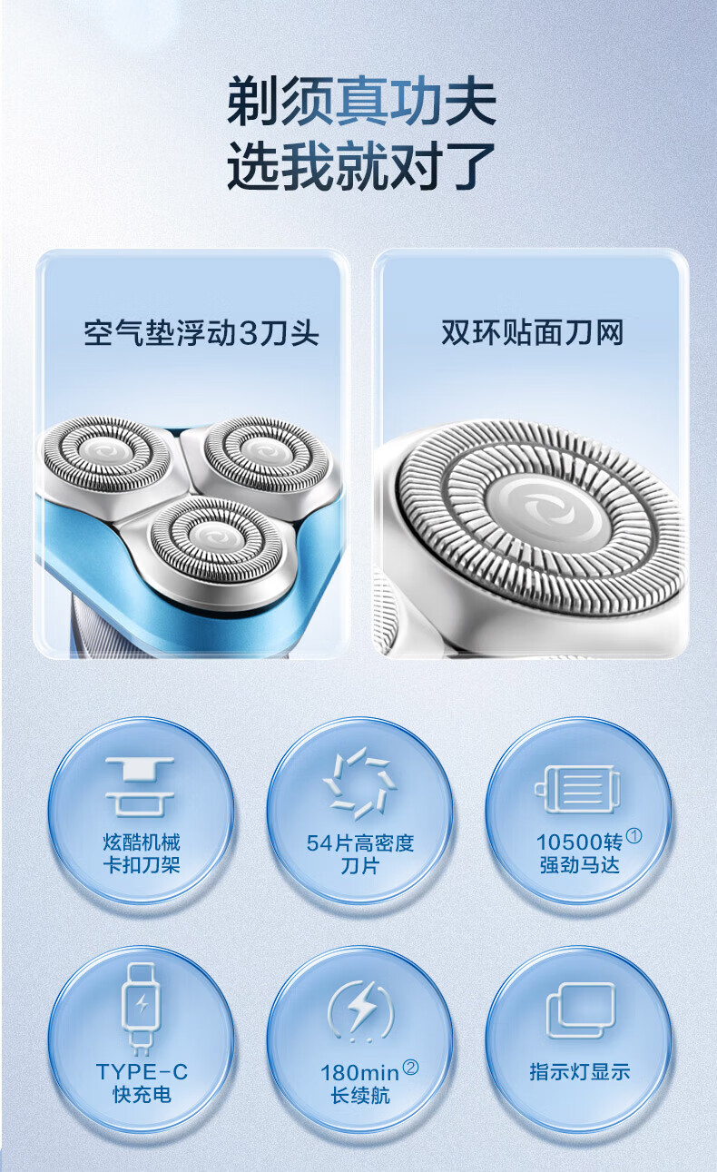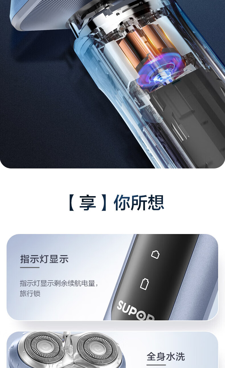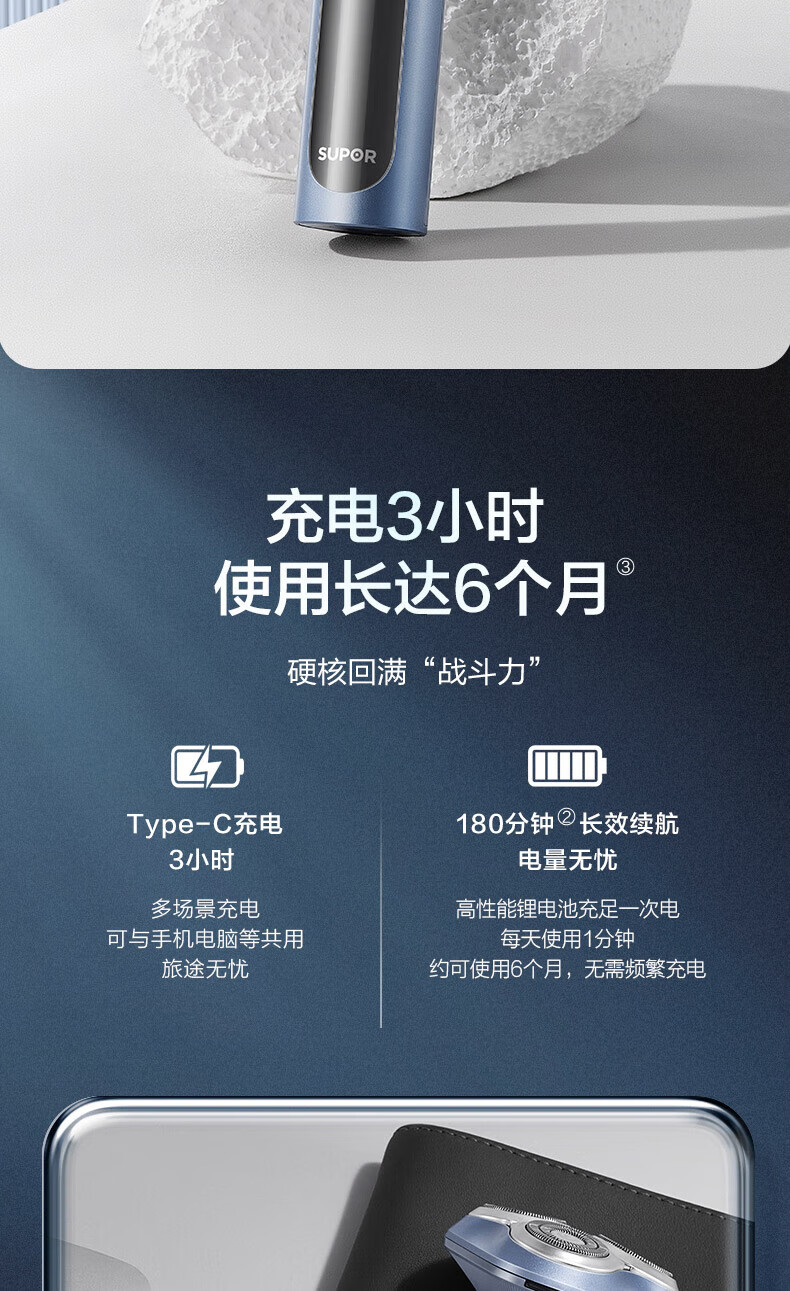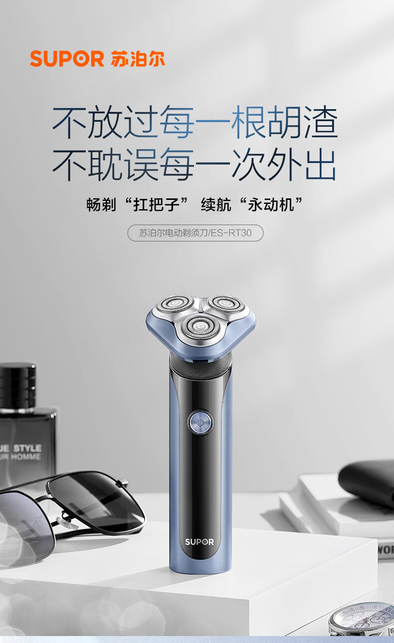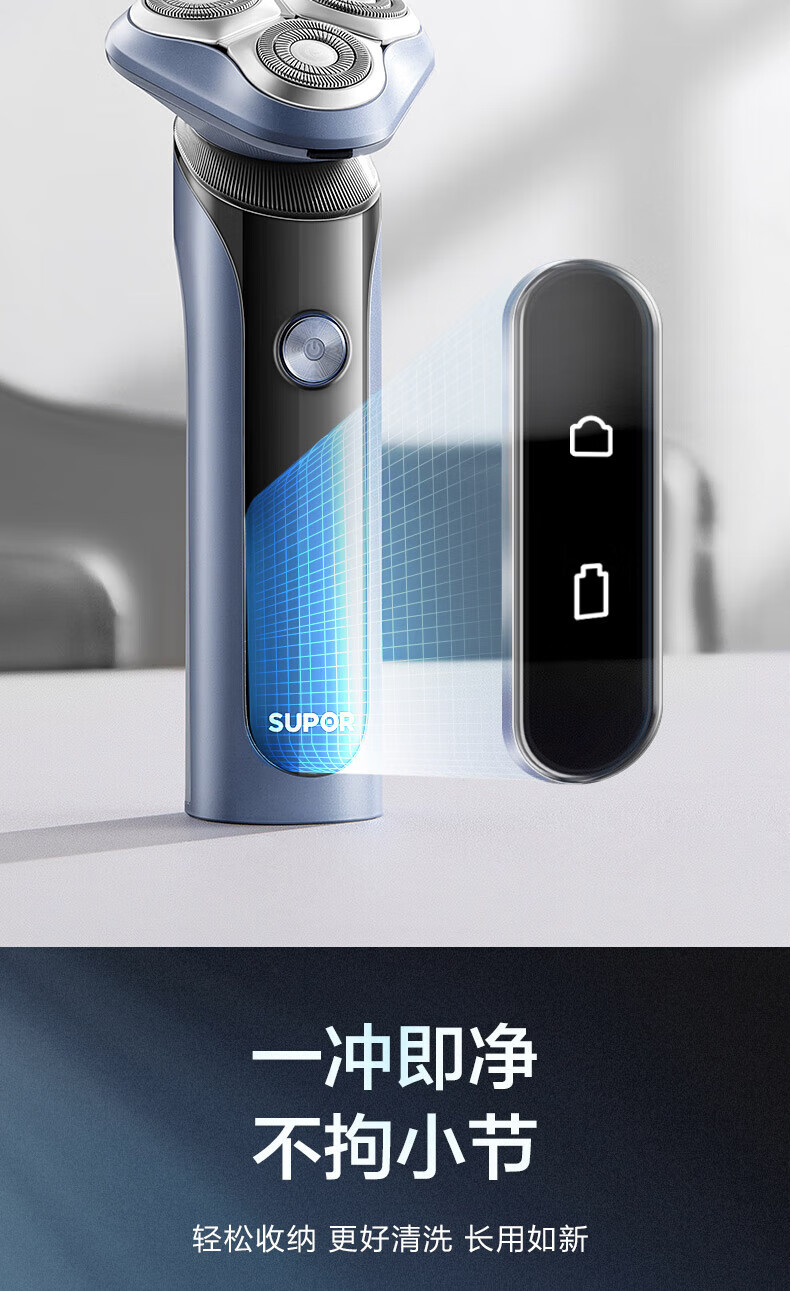 苏泊尔ZMD安心系列电动剃须刀 HM空气垫悬浮3刀头IPX7防水干湿双剃动力大屏显示刮胡刀全身水洗ES-RT30