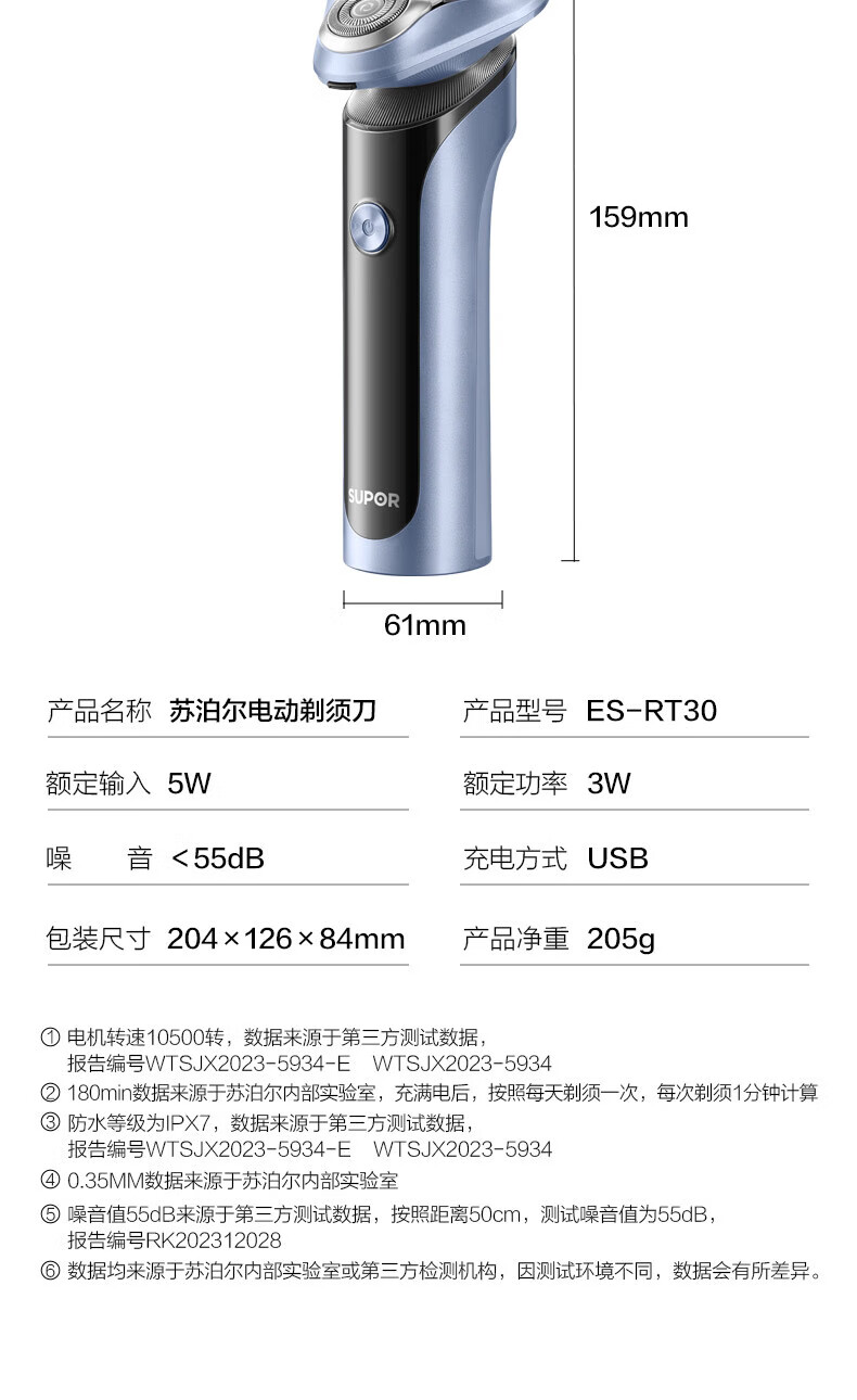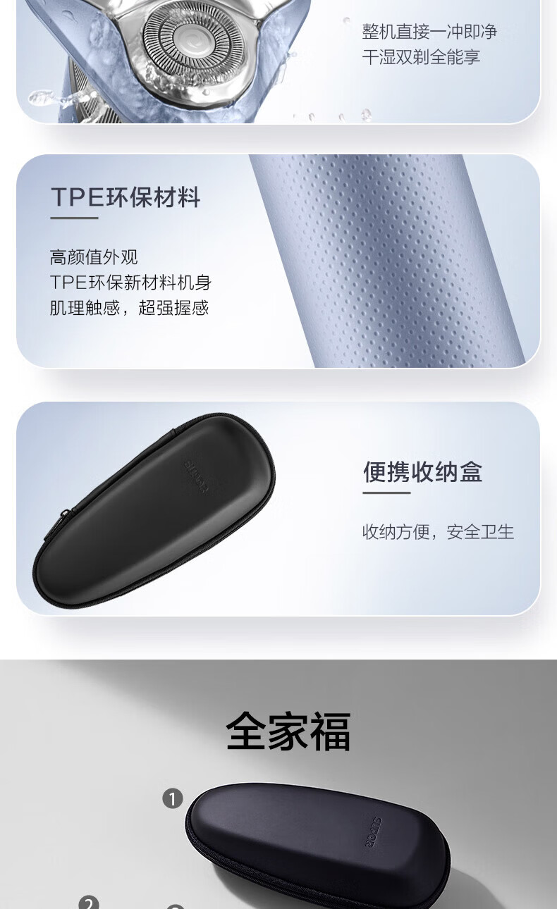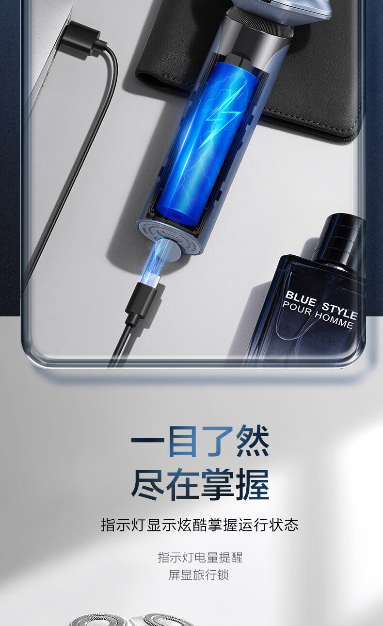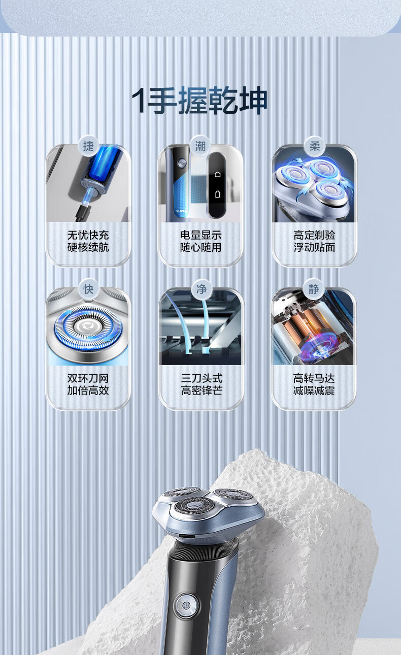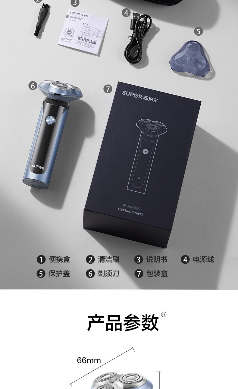 苏泊尔ZMD安心系列电动剃须刀 HM空气垫悬浮3刀头IPX7防水干湿双剃动力大屏显示刮胡刀全身水洗ES-RT30
